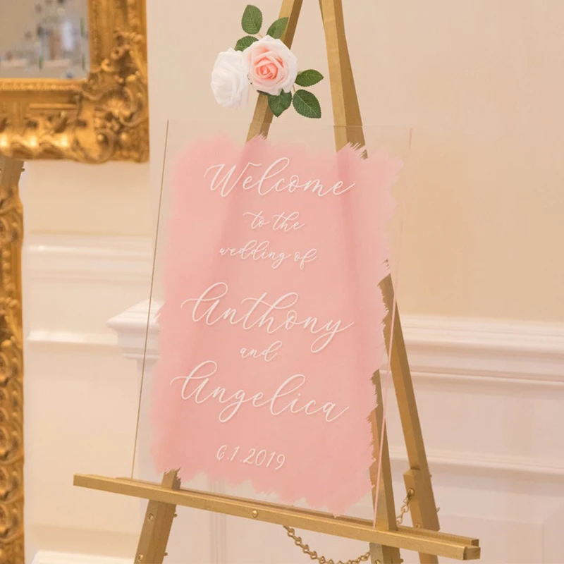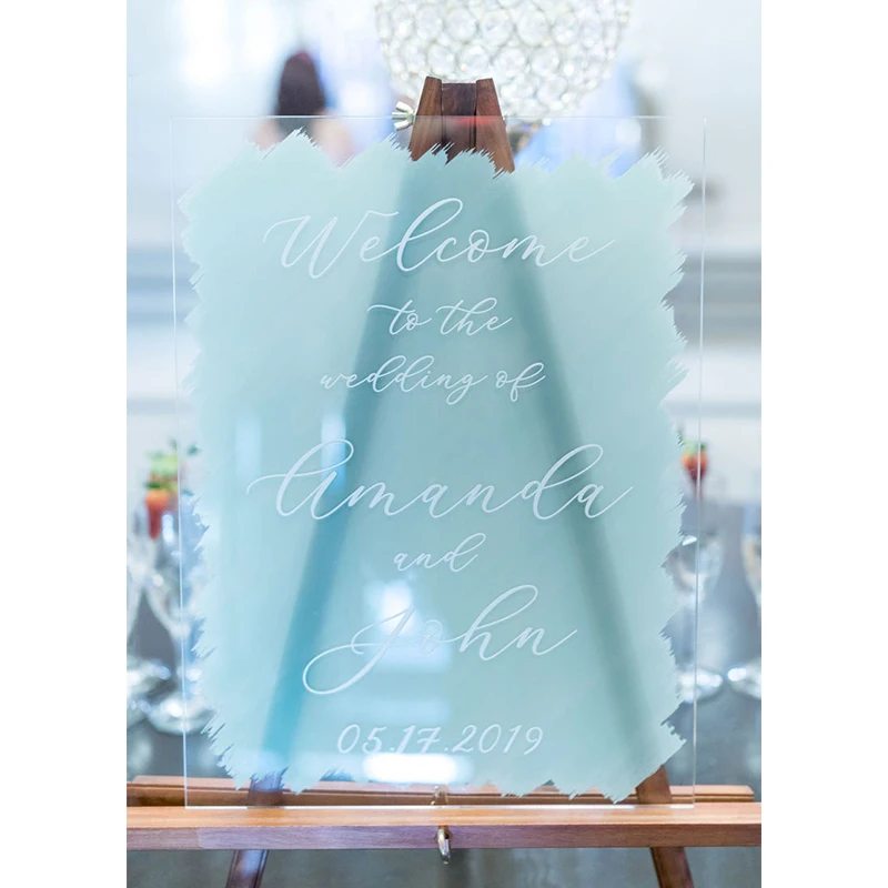 Свадебный знак приветствия, акриловый Свадебный знак, прозрачный окрашенный для свадьбы, дисплей, оргстекло, современные свадебные декорации знак