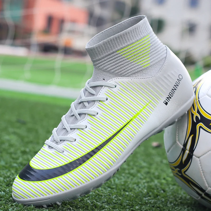 Черные мужские футбольные туфли Turf, Детские тренировочные футбольные бутсы, высокие спортивные кроссовки до щиколотки, размер 35-44, Прямая поставка