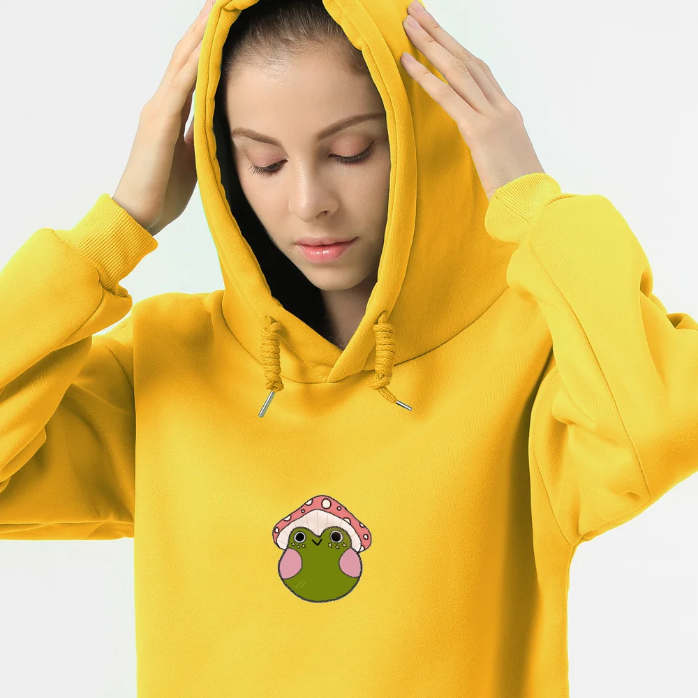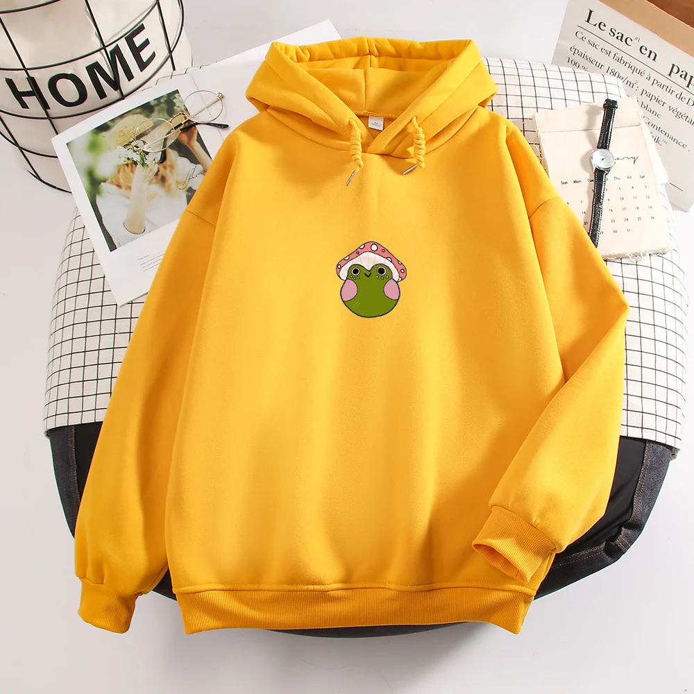 Худи с грибами, милая лягушка, Харадзюку, Готическая Эстетическая одежда, весна-осень, милые худи с рисунком, Женские винтажные худи Sudadera Mujer Стиль: Повседневный, Вес: 450 г, Воротник: с капюшоном
