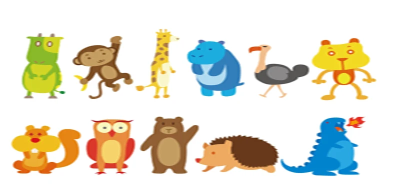 Мультяшные животные, Льва, обезьяна, Сова, слон, измерение высоты, ...