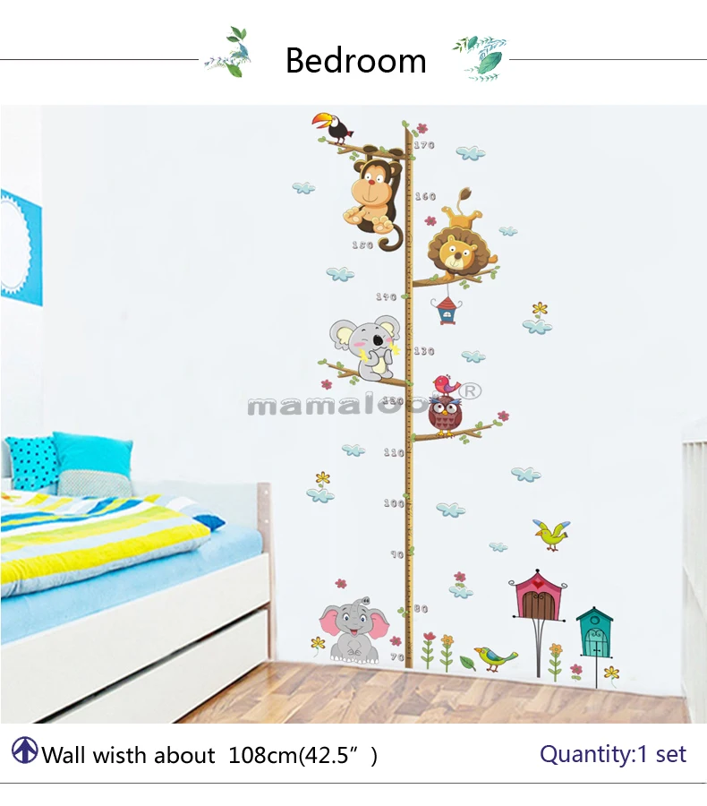Мультяшные животные, Лев, обезьяна, Сова, слон, измеряемая высота, настенный стикер для детских комнат, таблица роста, декор для детской комнаты, настенное искусство
