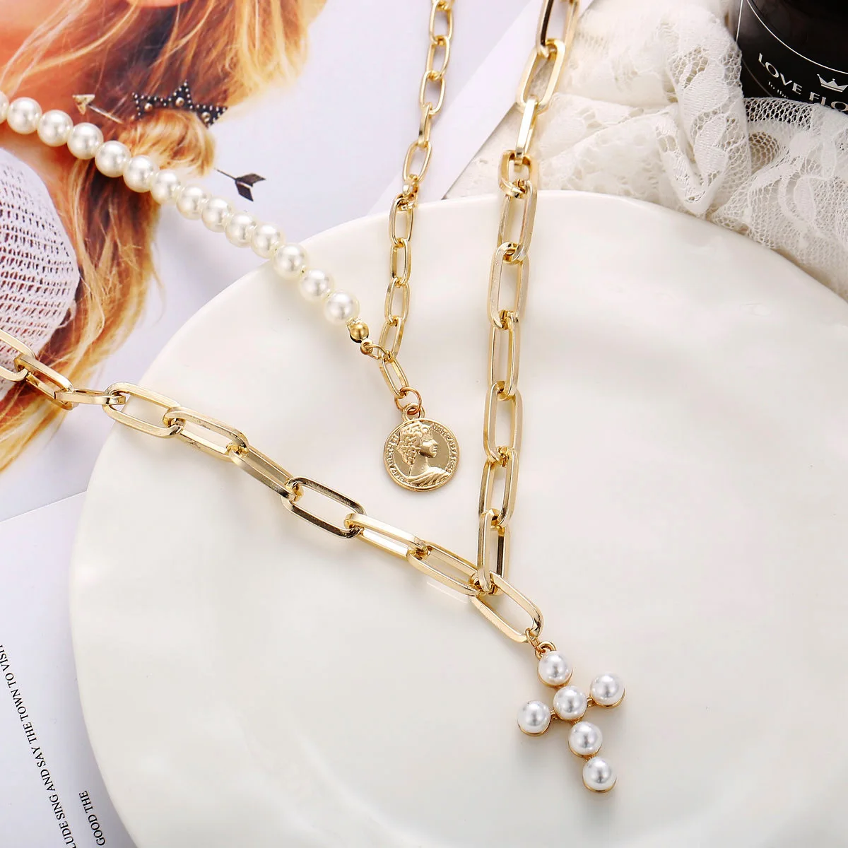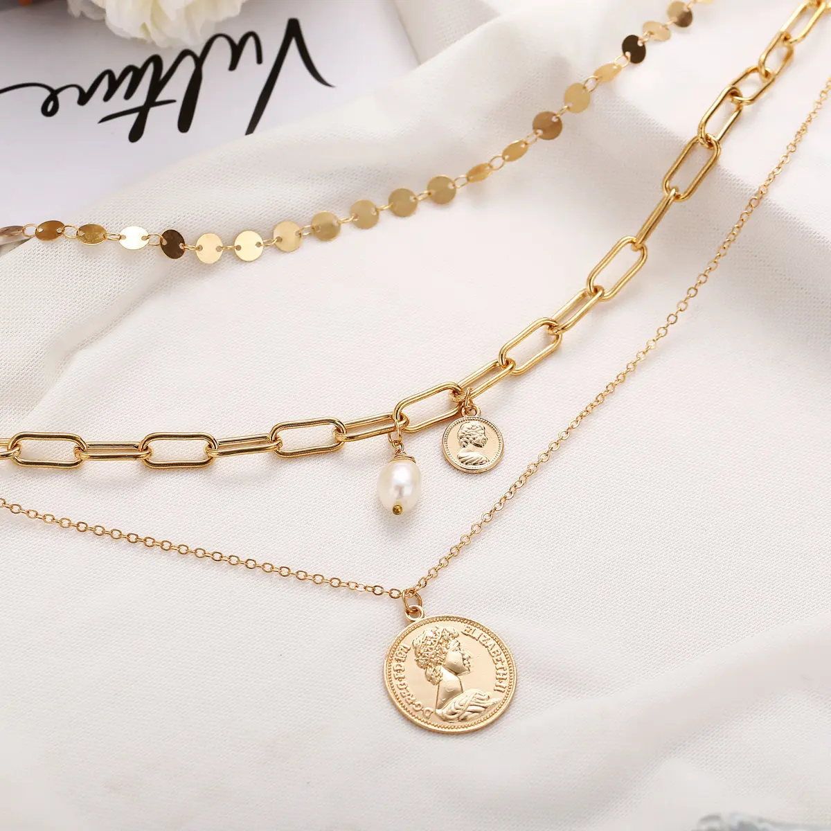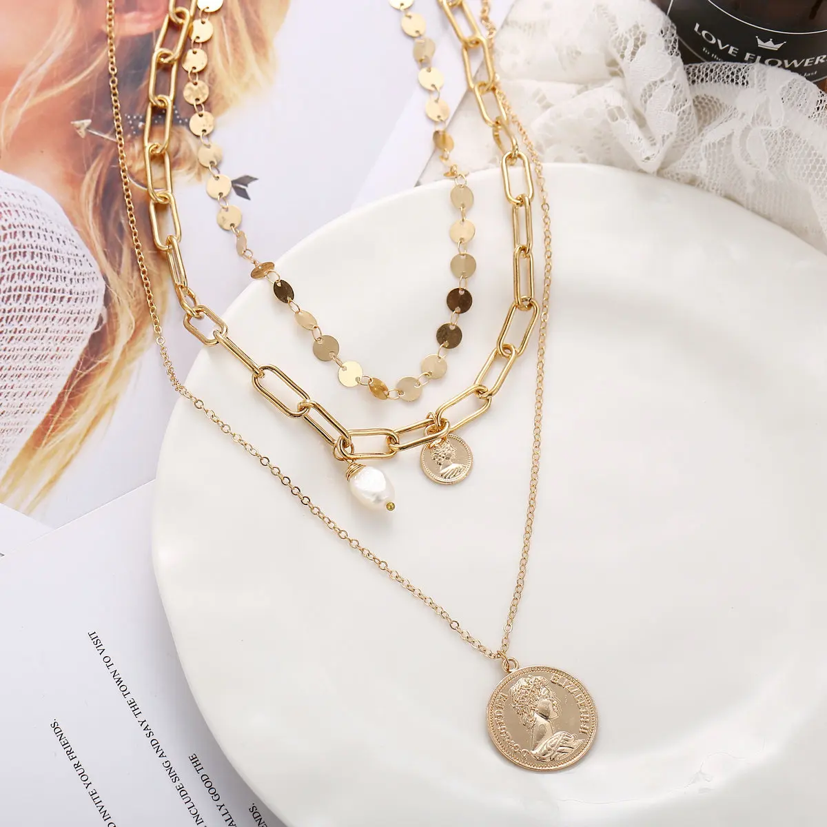 Женское ожерелье с подвеской в стиле панк-монета с портретом, нежные латунные цепочки золотого цвета, ювелирные изделия на Рождество, 2021
