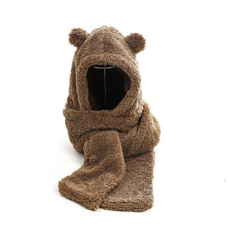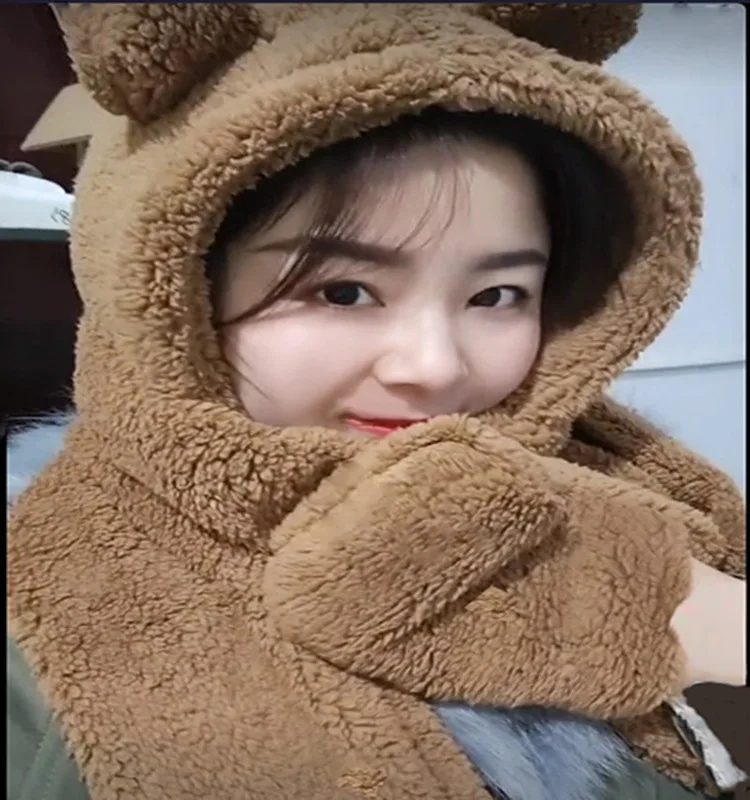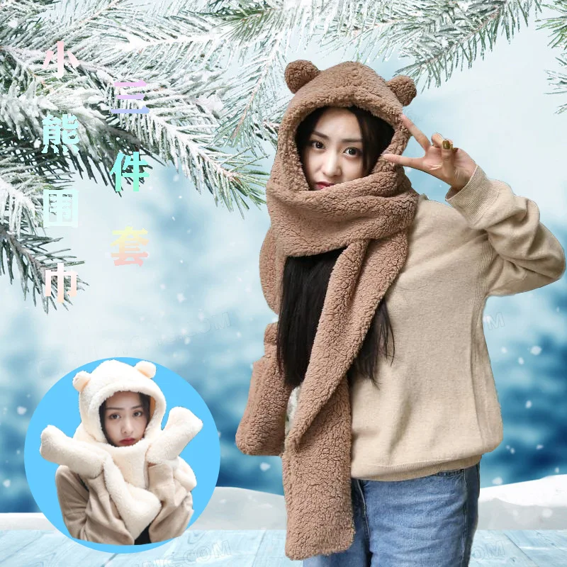 Шапка-шарф с милыми ушками медведя Джокера в Корейском стиле один теплый плюшевый зимний шарф-тройка