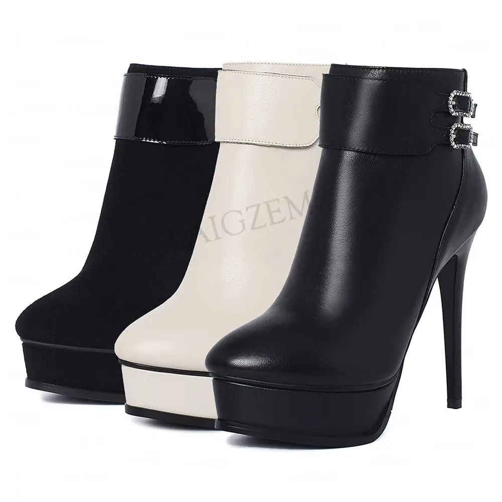 Модные женские ботильоны на платформе с молнией сбоку; Ботинки из натуральной кожи на тонком высоком каблуке; Женская обувь; Большие размеры 33, 38, 39, 41