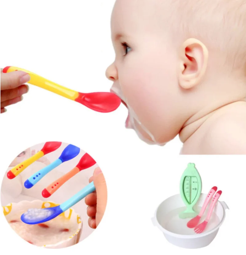 Детская Ложка для бутылки, ложки, вилка, силиконовая ложка, детский инструмент для детской безопасности, инструмент с датчиком температуры, посуда для малышей
