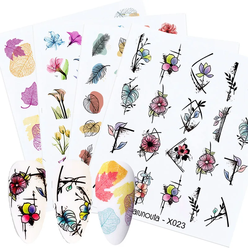 1 лист водных переводных картинок с цветами для ногтей Красочные абстрактные линии листья изображение наклейки для дизайна ногтей DIY маникюр Обертывания Декор
