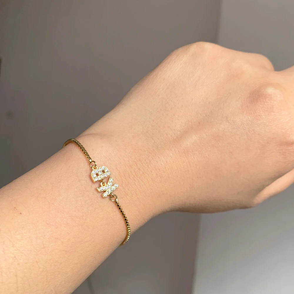 Индивидуальный браслет с 2 буквами и микро-закрепкой, CZ ABC, алфавит, Элегантный регулируемый браслет с бусинами, цепочка, браслет, манжеты, ювелирные изделия