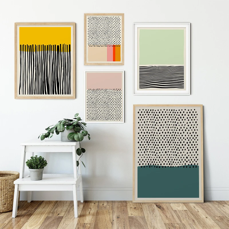 Современный разноцветный желтый розовый абстрактный геометрический постер настенное Искусство Холст Картина Печать галерея гостиная домашний декор