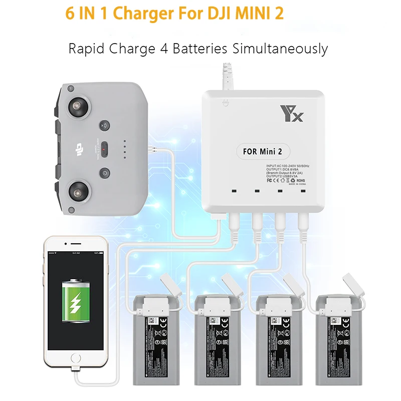 type 2Multi Charger For DJI Mini 2 Batteries &Remote Control