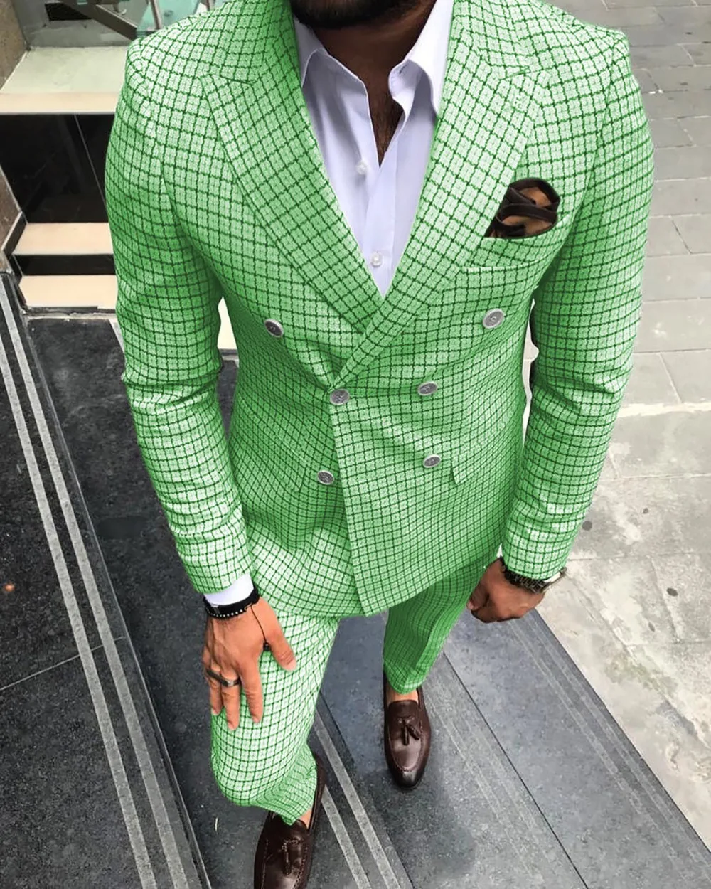 Мужской двубортный блейзер в клетку, смокинг мятно-зеленого цвета, костюм для шафера, блейзер и брюки, 2022