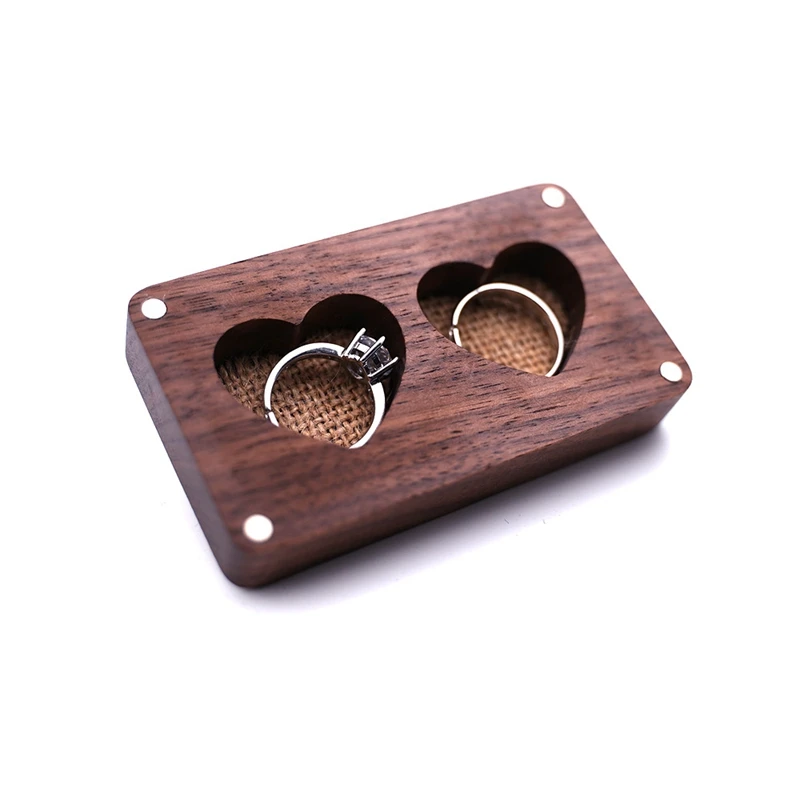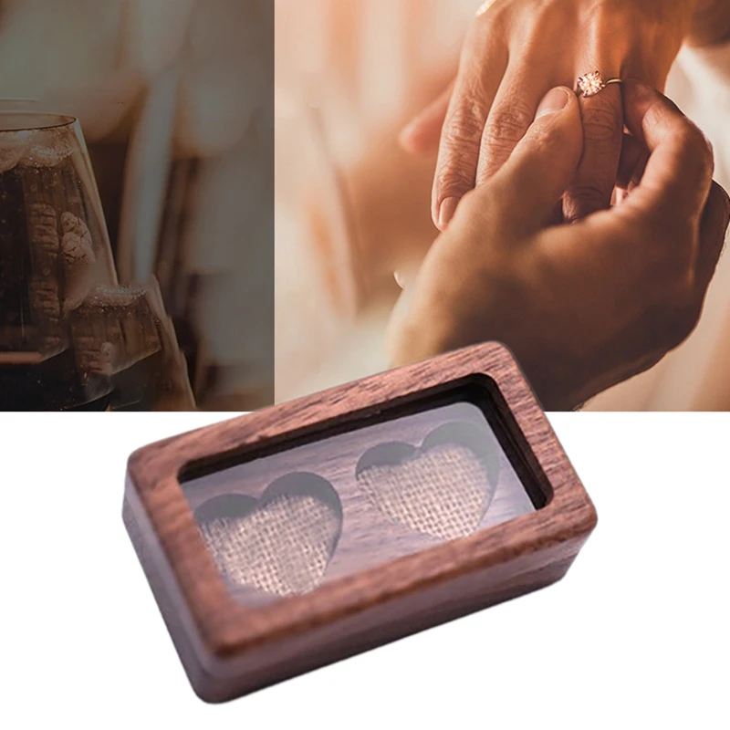 Деревянная шкатулка для ювелирных изделий, для помолвки, свадебной церемонии, для хранения колец, портативная шкатулка для обручальных колец в деревенском стиле