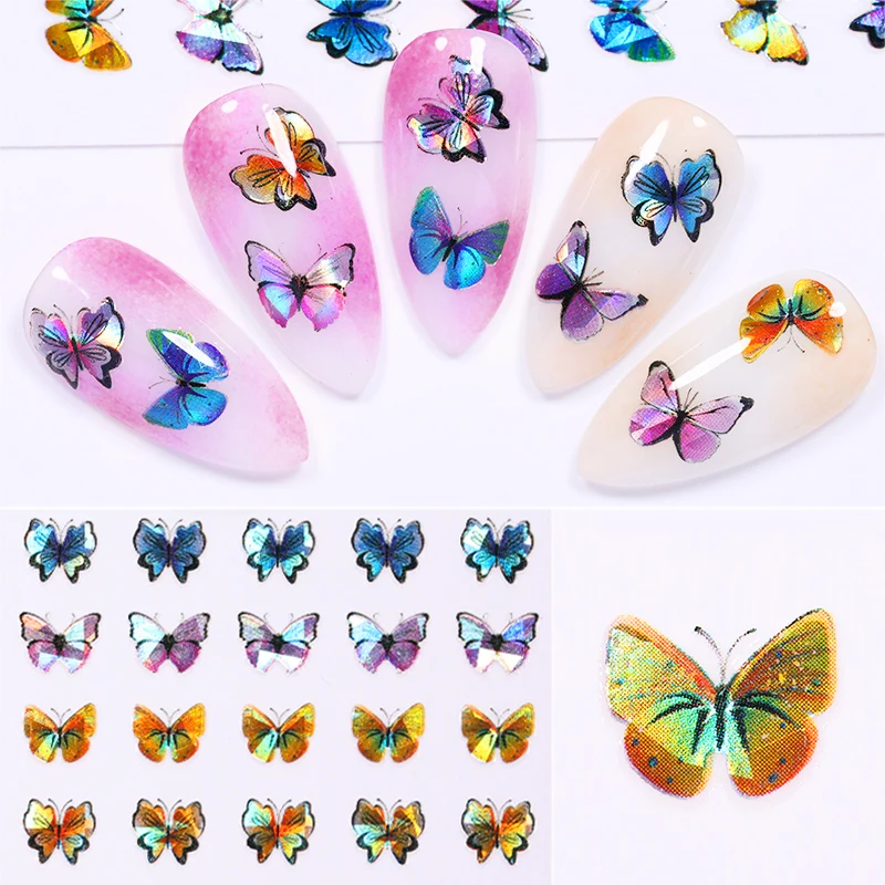 Переводные 3D-Наклейки для ногтей, Бабочка, переливающиеся наклейки для ногтей, сказки, переводные наклейки для ногтей, украшения для ногтей, дизайн сделай сам