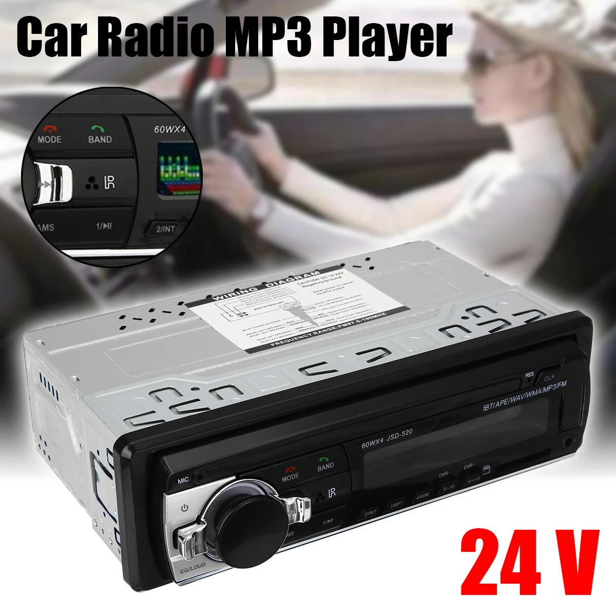 1 комплект JSD-520 24V Цифровой Автомобильный MP3-плеер 60Wx4 FM Радио стерео аудио плеер USBSD Поддержка MP3WMA объемным пультом дистанционного управления Управление часы