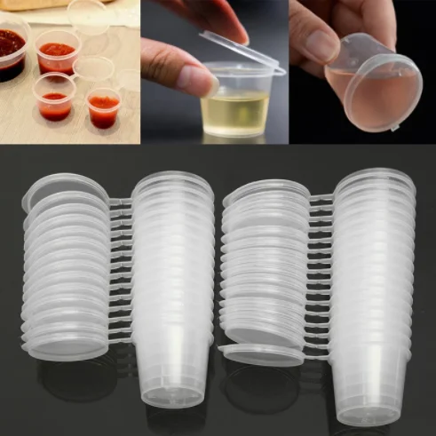 50 шт.компл. 27ml одноразовые Пластик вынос рыбный соус чашки круглых контейнеров Еда коробка с крышкой крышки пигмент Краски коробка