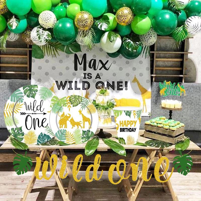 Украшения для дня рождения Wild One, зеленый латексный шар, одноразовая посуда для детей на 1-й день рождения, сафари, джунгли, Лесной Декор для вечеринки