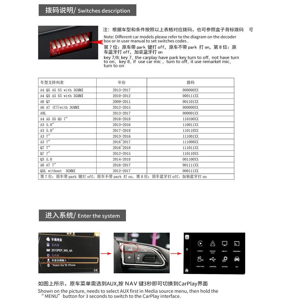 Беспроводное Автомобильное зеркало заднего вида Apple CarPlay для Audi