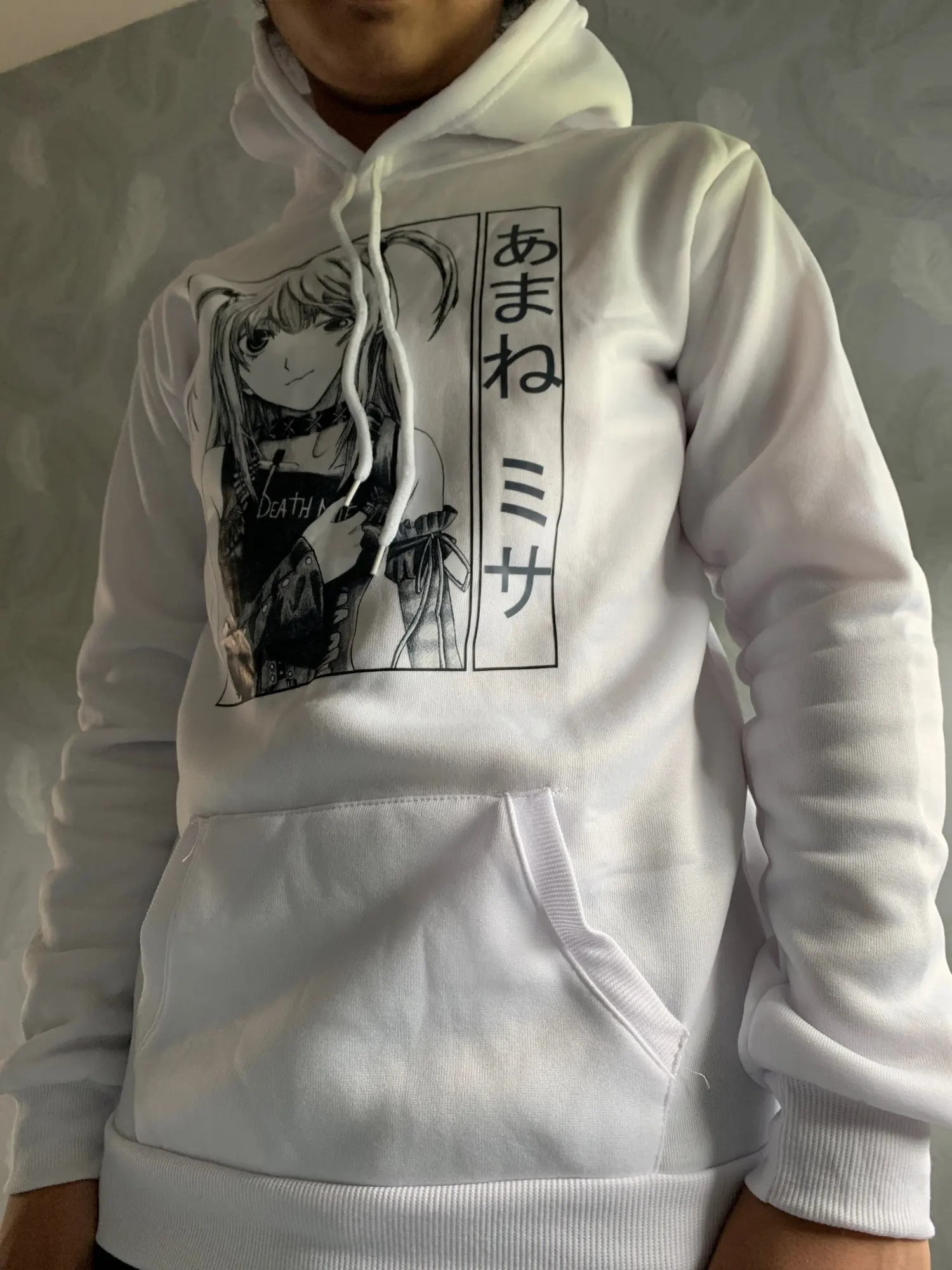 The item is very well made, the fabric is really soft and Misa (the girl on the front) was very well printed, this company did a very good job at delivery and packaging, there are no stains or damage to any of the sweaters 10/10 :)