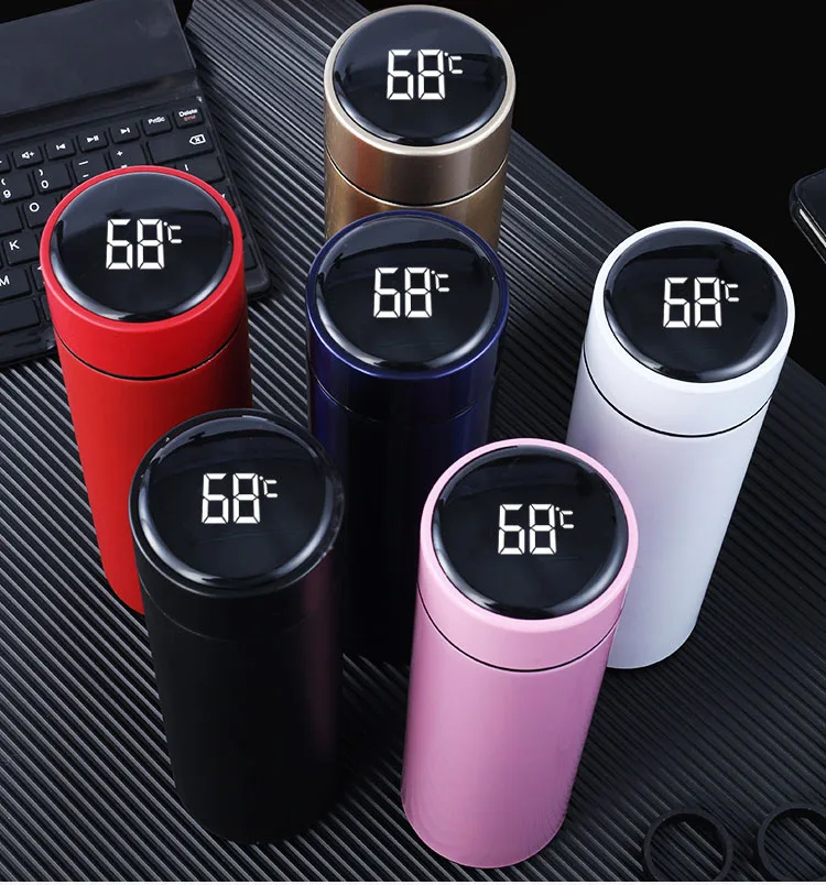 Стильная умная Изолированная кружка из нержавеющей стали, светодиодный дисплей температуры, Вакуумная чашка, 500 мл, термос, бутылка для воды