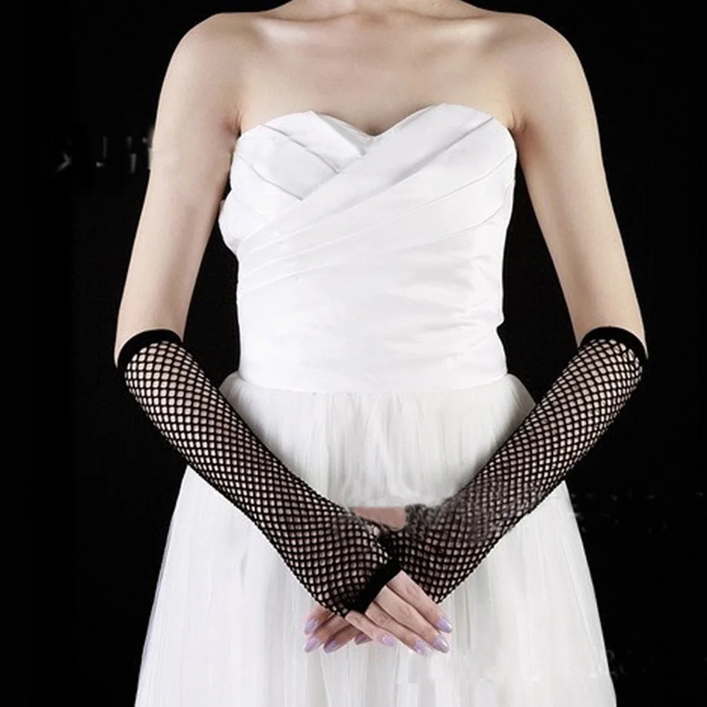Сексуальные неоновые сетчатые без пальцев длинные перчатки, манжеты, готический панк, нарядное платье, подарок