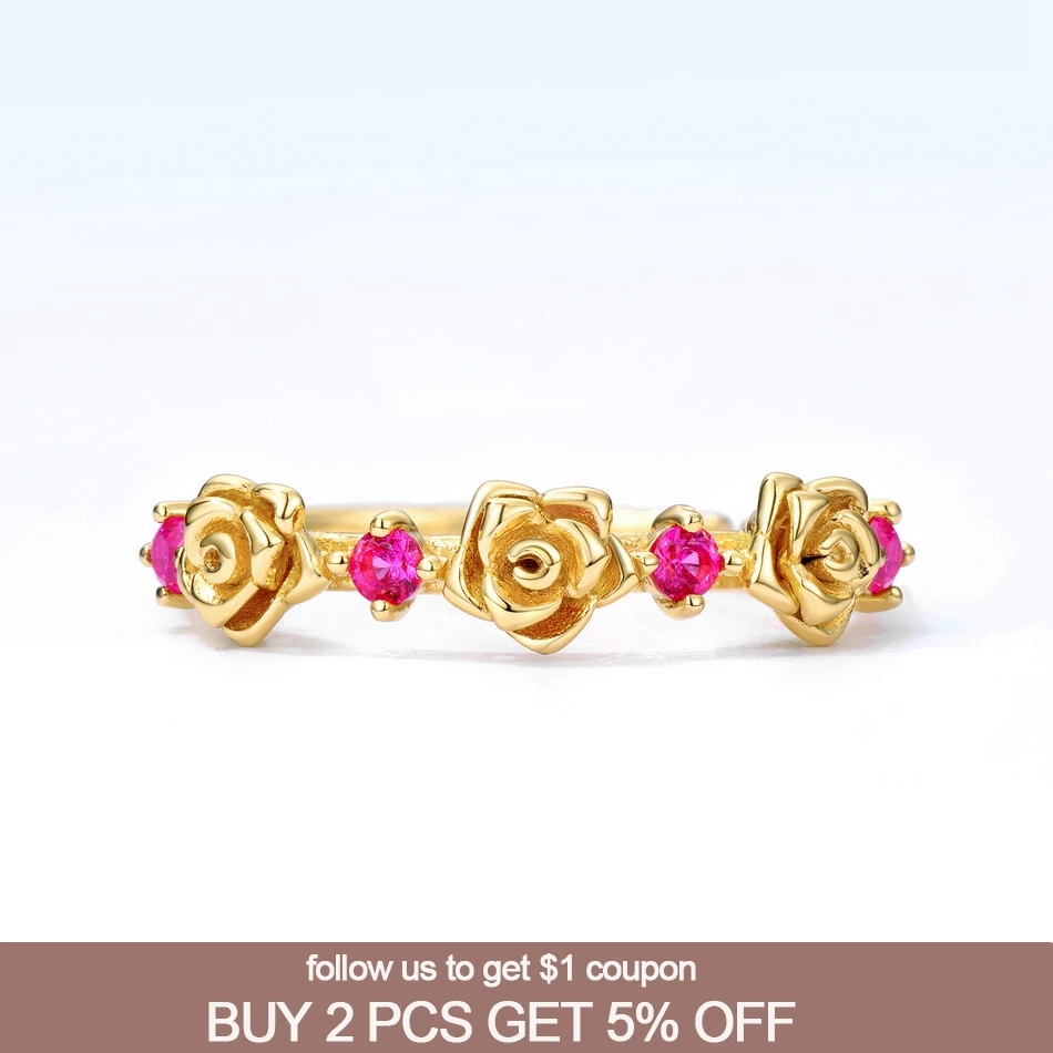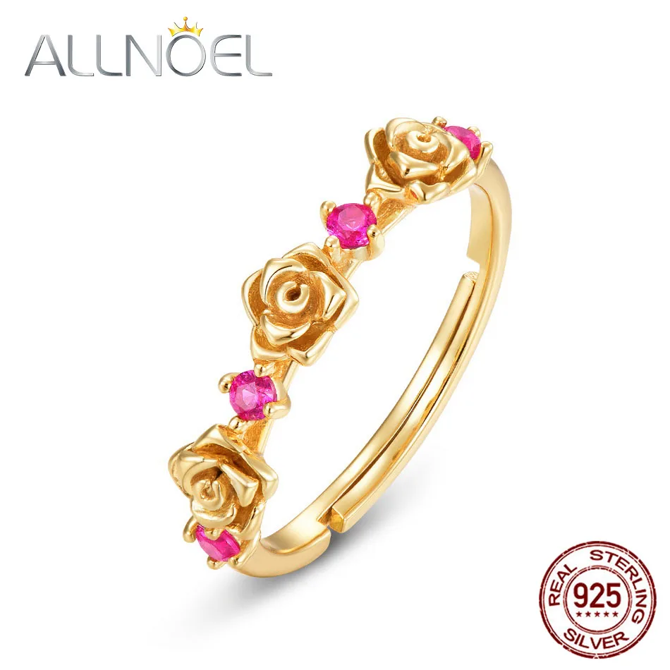 ALLNOEL, цельные кольца из стерлингового серебра для женщин, натуральный красный корунд, розовая настоящая позолота, элегантные обручальные свадебные ювелирные украшения
