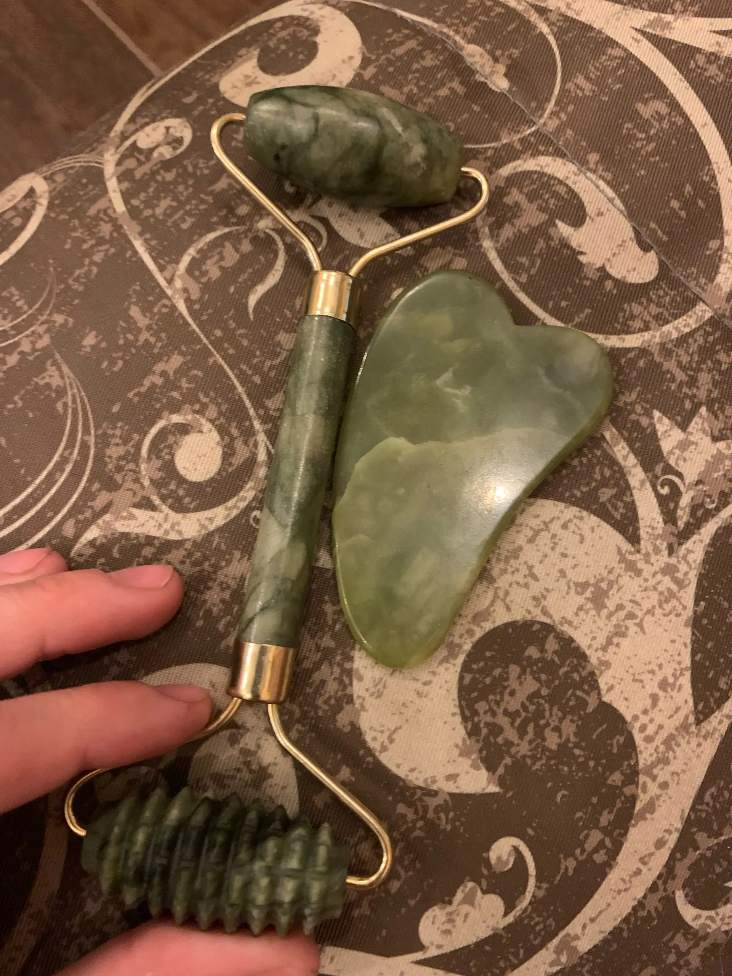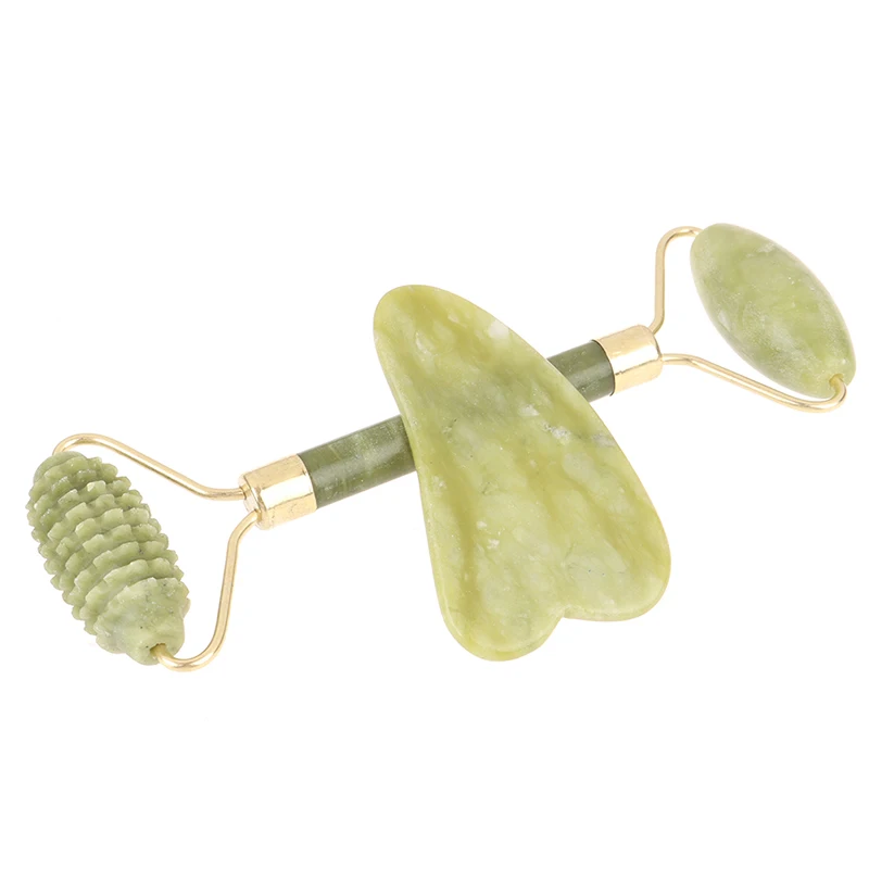2 шт.компл. двойной инструмент для косметический массаж лица гуаша из натурального нефрита массажер для лица и шеи роликовый массажер для кожи инструменты для ухода за здоровьем