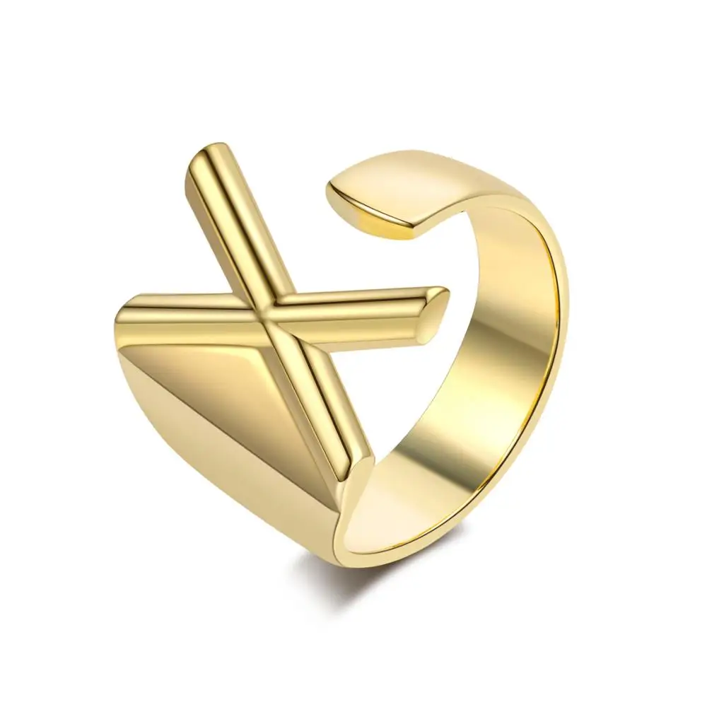Кольцо женское регулируемое, 26 букв золотого цвета, металлическое,...