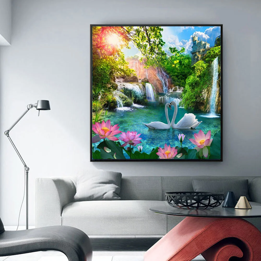 Алмазная 5d картина HUACAN, мозаика Водопад, сделай сам, лебедь вышитые алмазами стразы, картины для домашнего декора