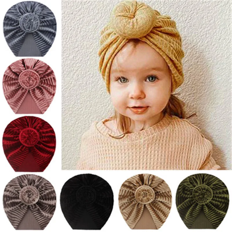 Бархатная шляпа с ушками для новорожденных, шапка с большими пончиками для девочек, бархатная индийская Осенняя шапка, шапка для маленьких мальчиков, реквизит для фотографии, Шапка-тюрбан, детская шапка