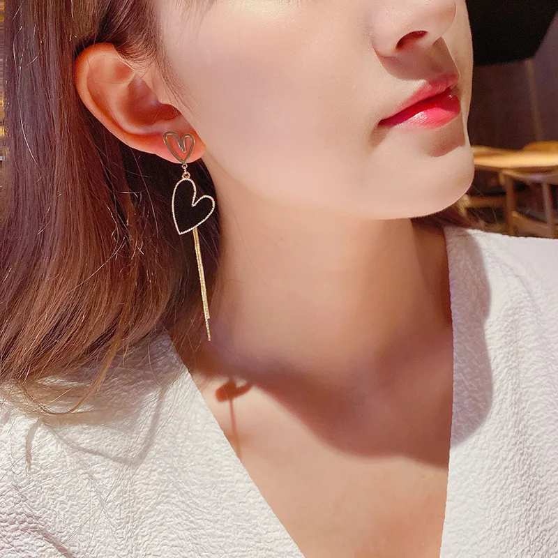 Сезон осень-зима; Новое сердце Тип асимметричные серьги 925 Серебряные иглы длинной кисточкой серьги в стиле ночного клуба; Стиль серьги