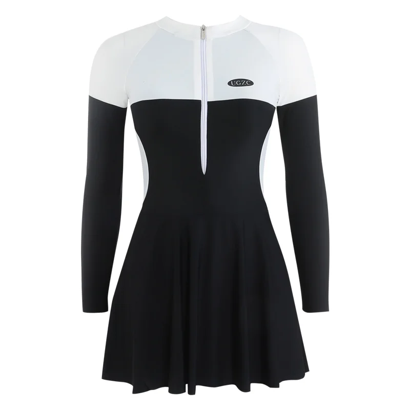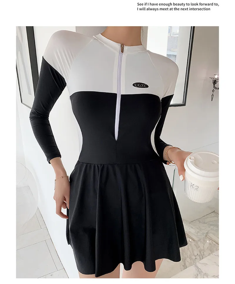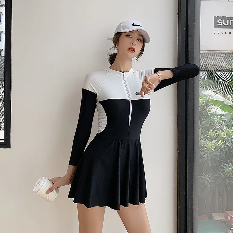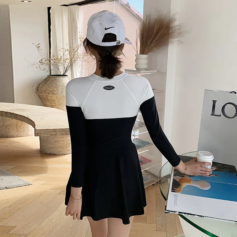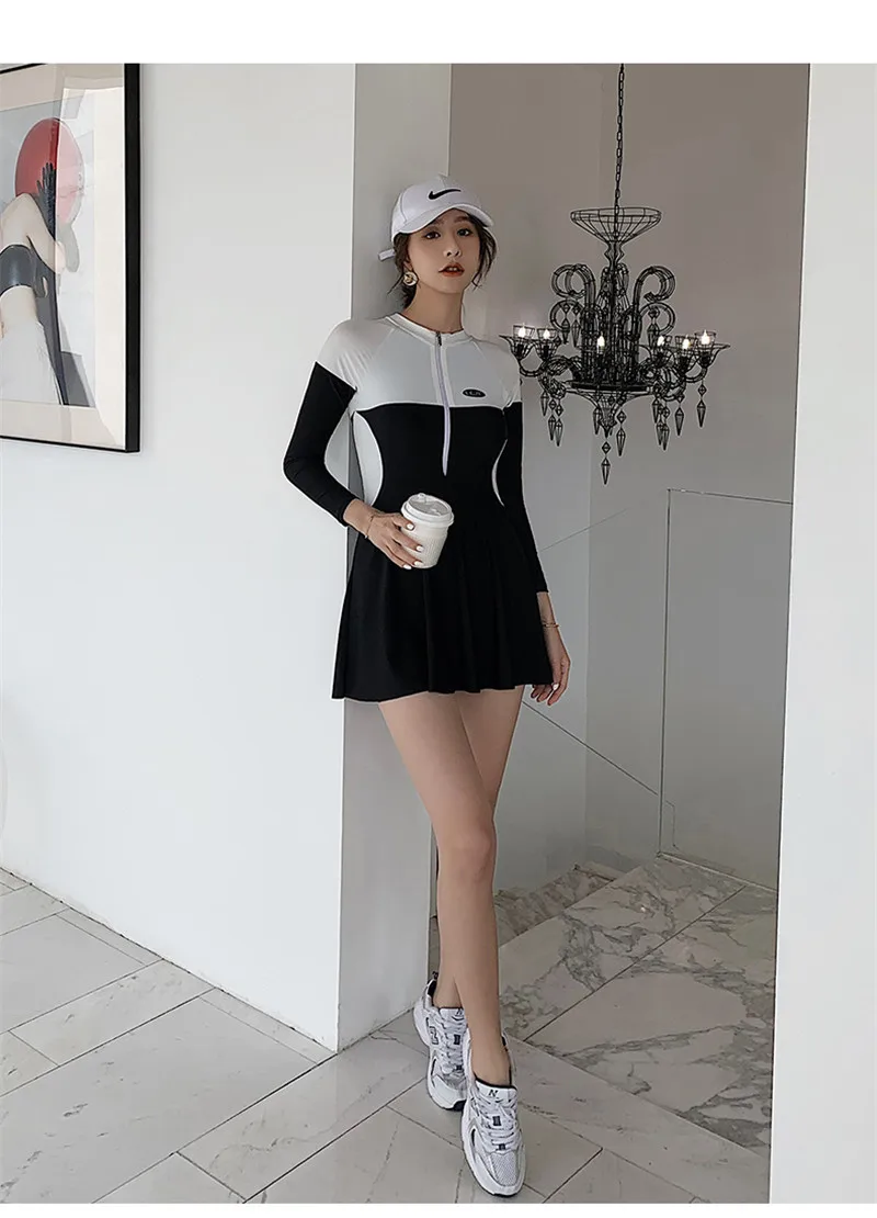 Новый корейский Спортивный Купальный костюм с длинным рукавом цельный купальный костюм женский Рашгард для серфинга Женская одежда для плавания танкини УФ-платье для плавания для пляжа
