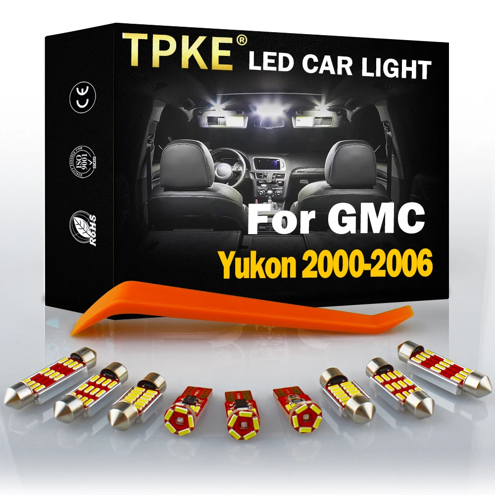 Комплект TPKE 11 шт., белый Светодиодная лампа для освещения салона автомобиля для 2000 2001 2002 2003 2004 2005 2006 GMC Yukon Map, купольная лампа для номерного знака багажника