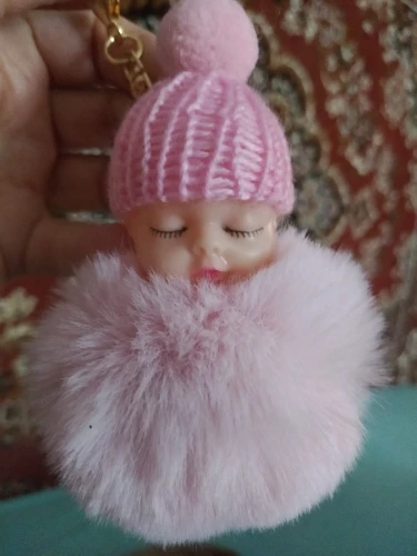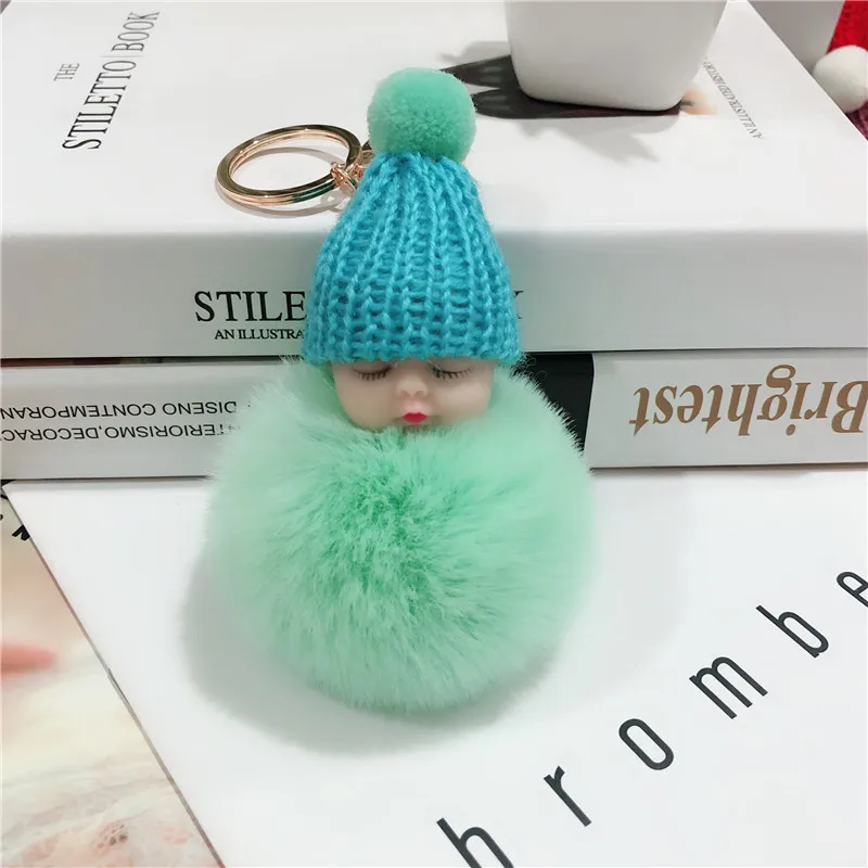 Новинка, помпон, брелок для ключей в виде спящего ребенка, милые пушистые плюшевые брелоки для женщин и девочек, брелок для ключей в виде автомобиля, ювелирные изделия в подарок