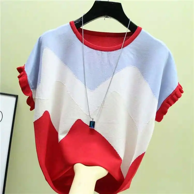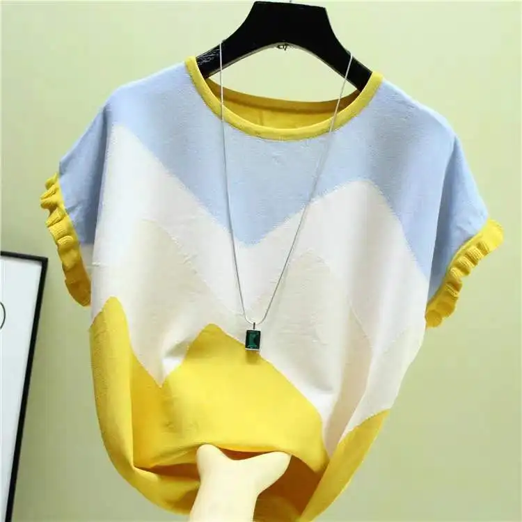Свитер женский трикотажный, тонкий, эластичный, с коротким рукавом, лето 2021