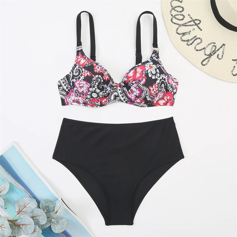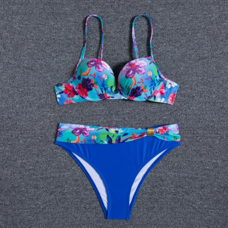 Купальник женский, бикини с эффектом пуш-ап, новинка 2022, комплект бикини с цветочным принтом, пляжная одежда, купальный костюм, женское бикини из двух предметов