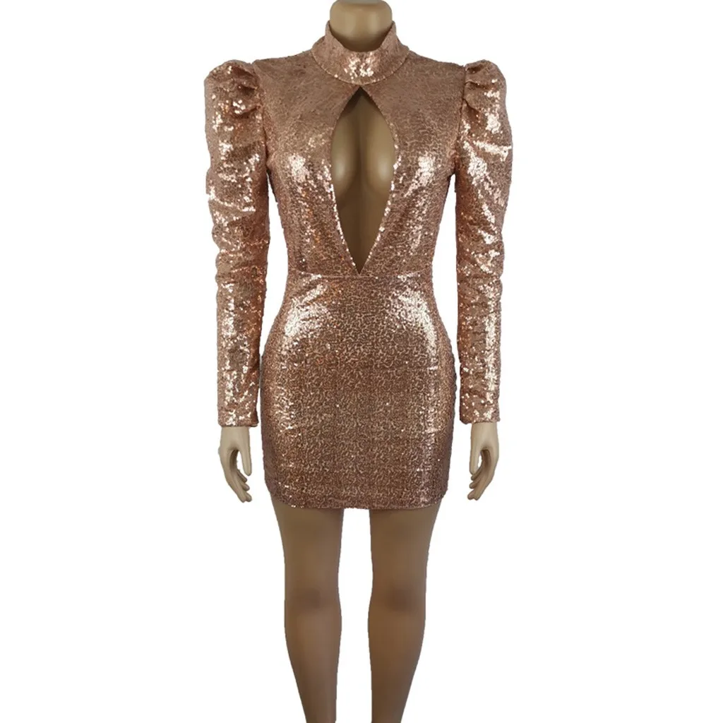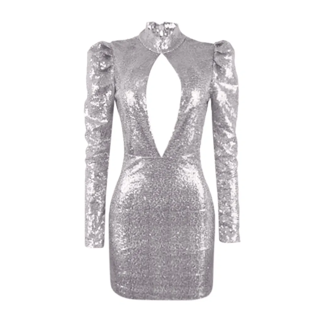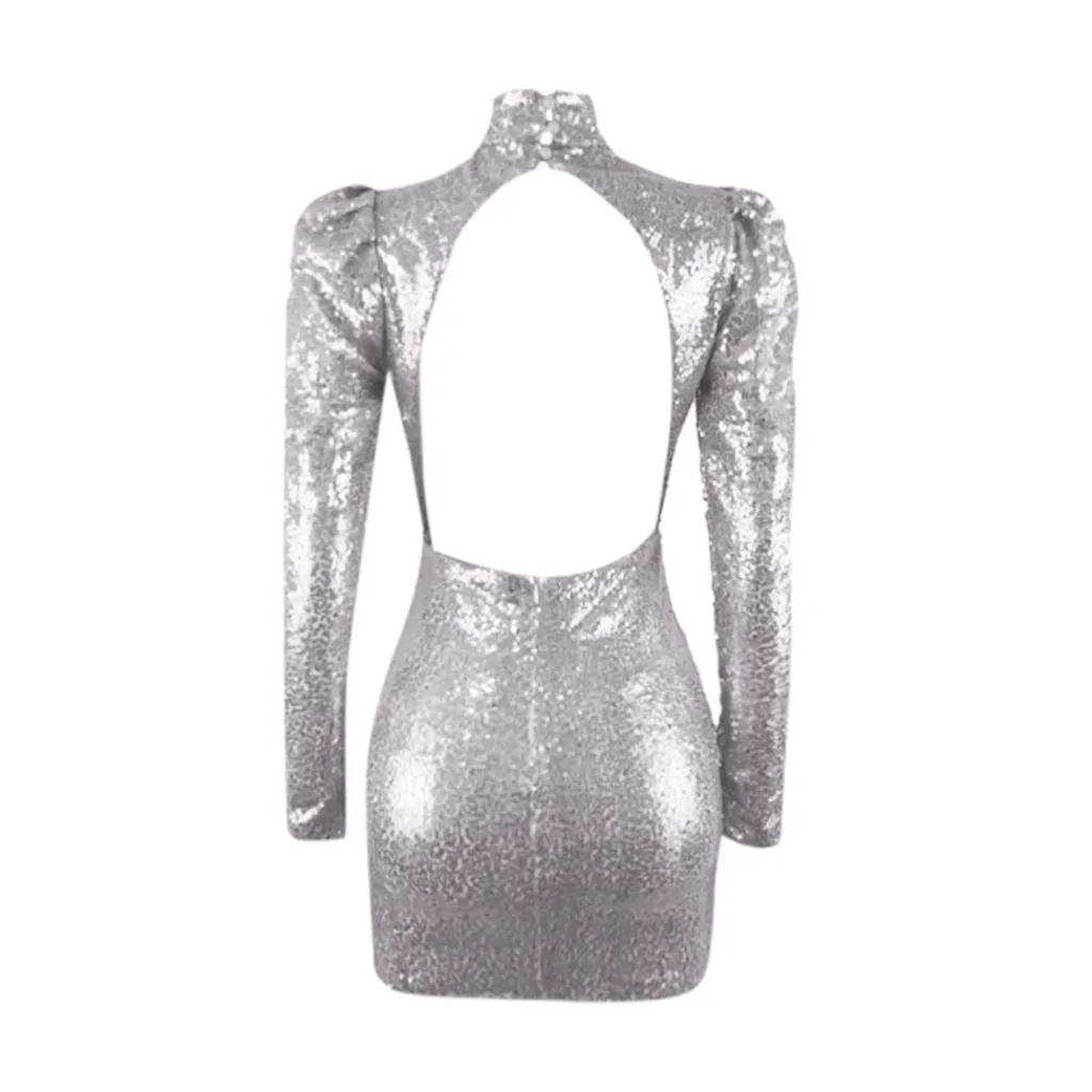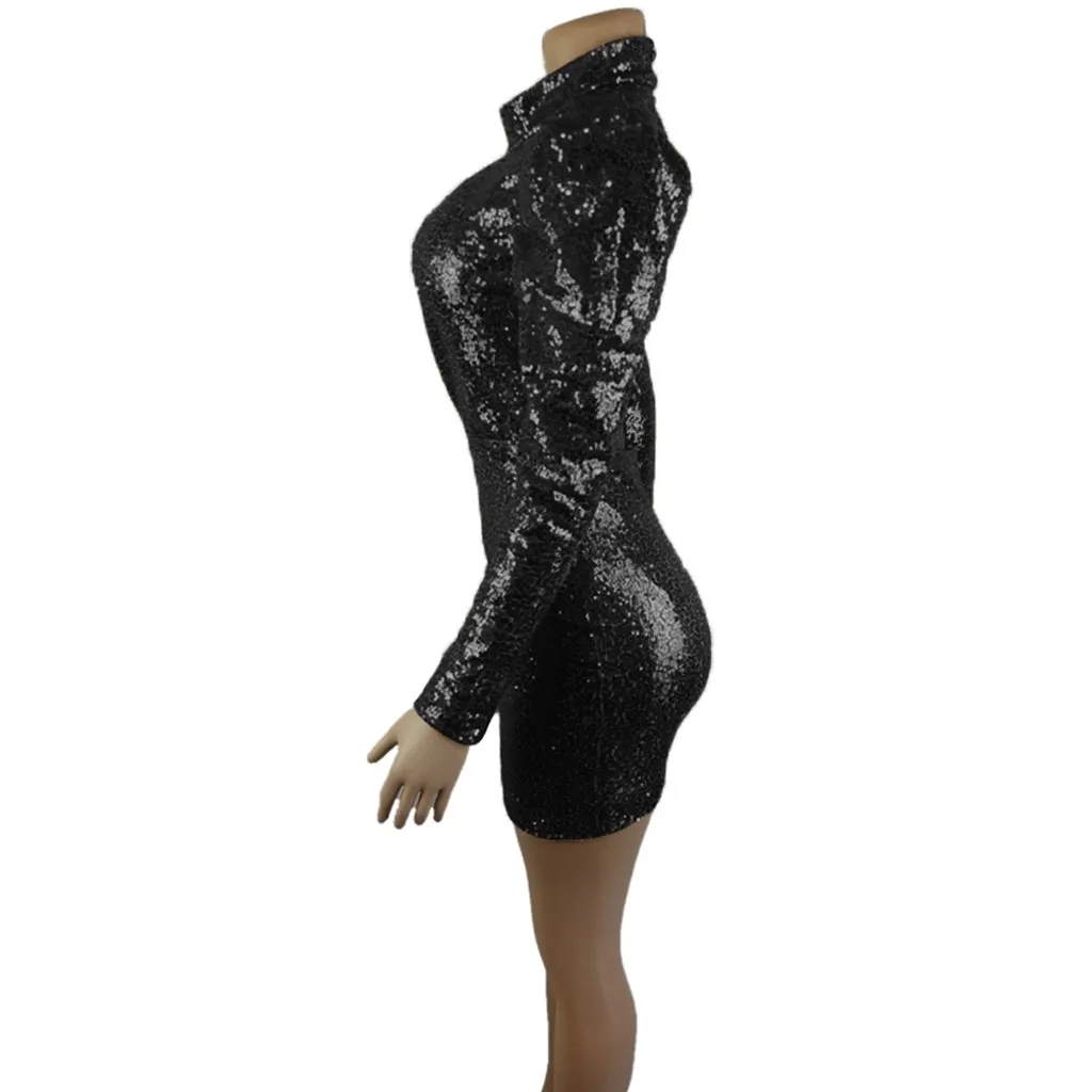 Женское модное однотонное мини-платье с блестками, с длинным рукавом, с открытой спиной, вечерние платья
