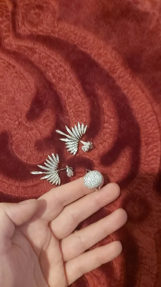 Игра визуально очень красивая, камни кажутся хорошо закрепленными, Размер большой, я заказал размер 8, и он был немного большим, кусочки довольно тяжелые, это определенно не Ag 925, это не серебро, это прекрасное украшение, продавец лжет. Внутренние концы кольца очень грубые, а пост сережек очень тонкий для такой тяжелой части. Они прибыли в сложенном виде, я их установил, но когда я надеваю крышки, они снова складываются, они, безусловно, скоро уйдут. Я был очень разочарован, потому что по цене я ожидал, что это действительно серебро. Мне жаль, потому что я заказал еще 2 комплекта, которые не прибыли, и они были дорогими, чтобы быть медью или сплавом. Вы даже не знаете, что они сделаны. Я бы даже не помыл руки с кольцом. Когда я использую серьги, я скажу, если они раздражают меня или нет.