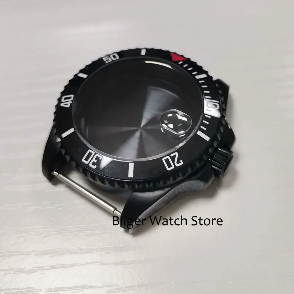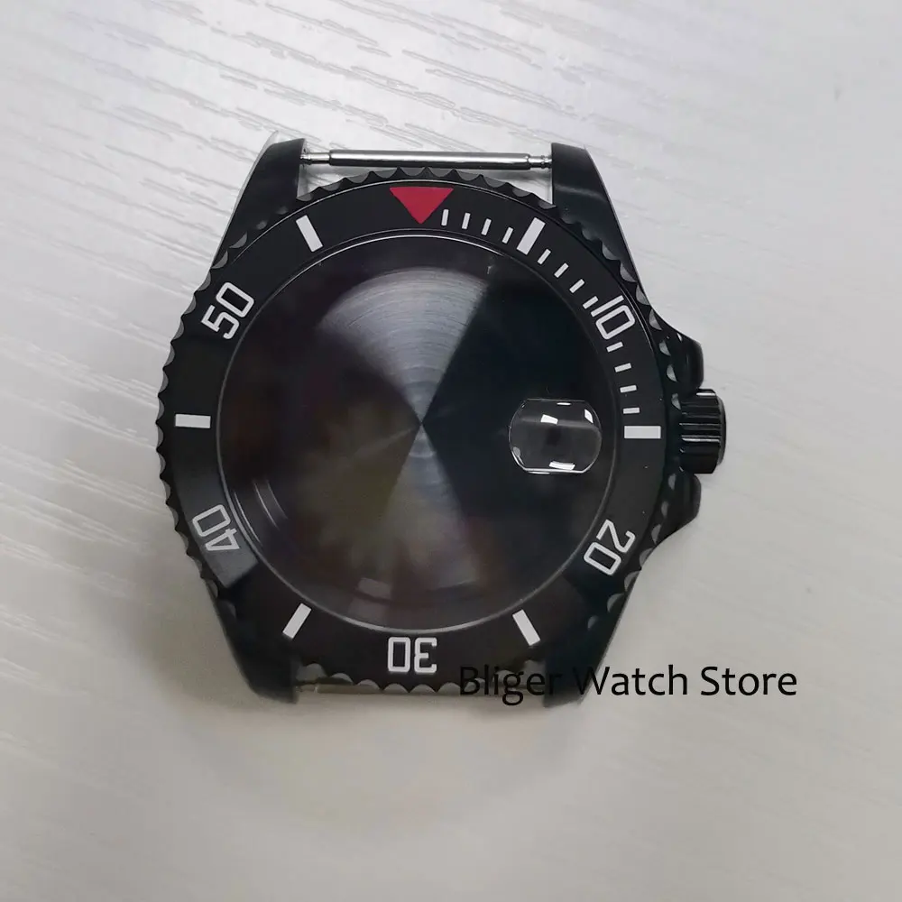 Черный чехол BLIGER SUB PVD для наручных часов, 40 мм, подходит для NH35 Saphire Glass с Циклопом, однонаправленный Безель, винтовая корона, красный треугольник