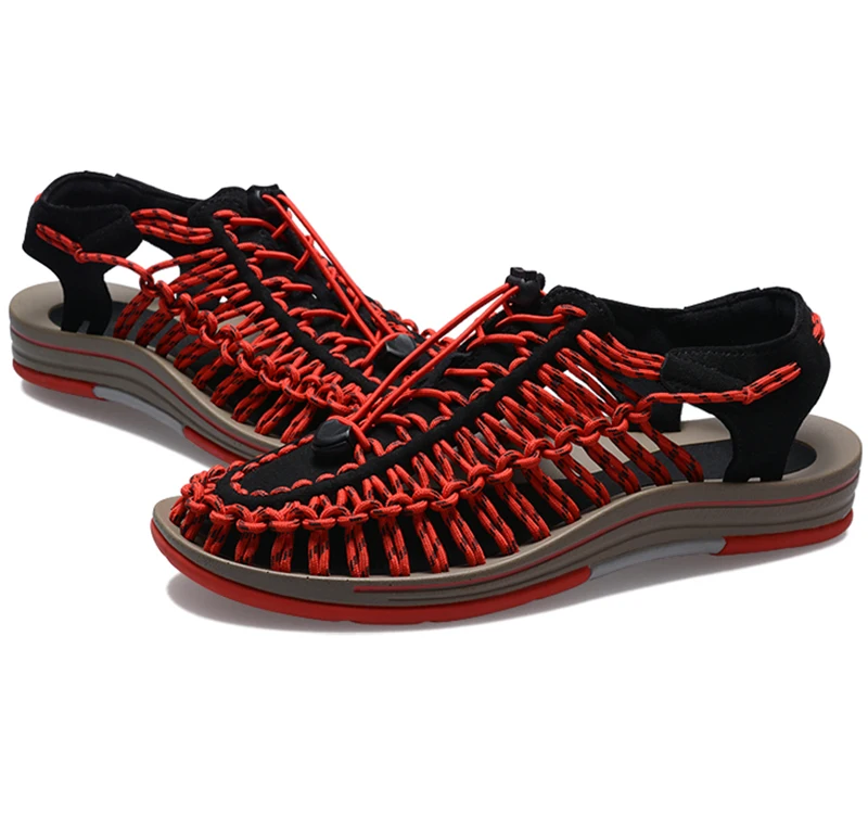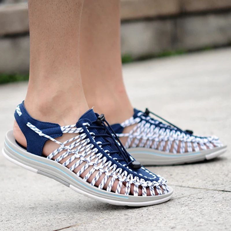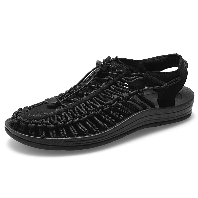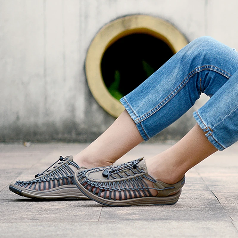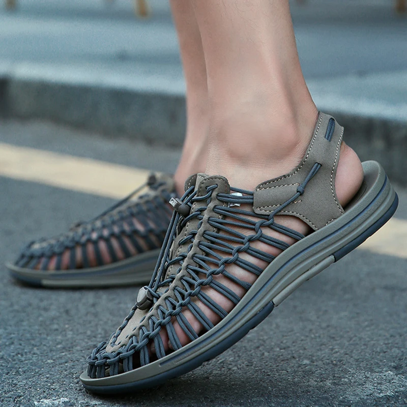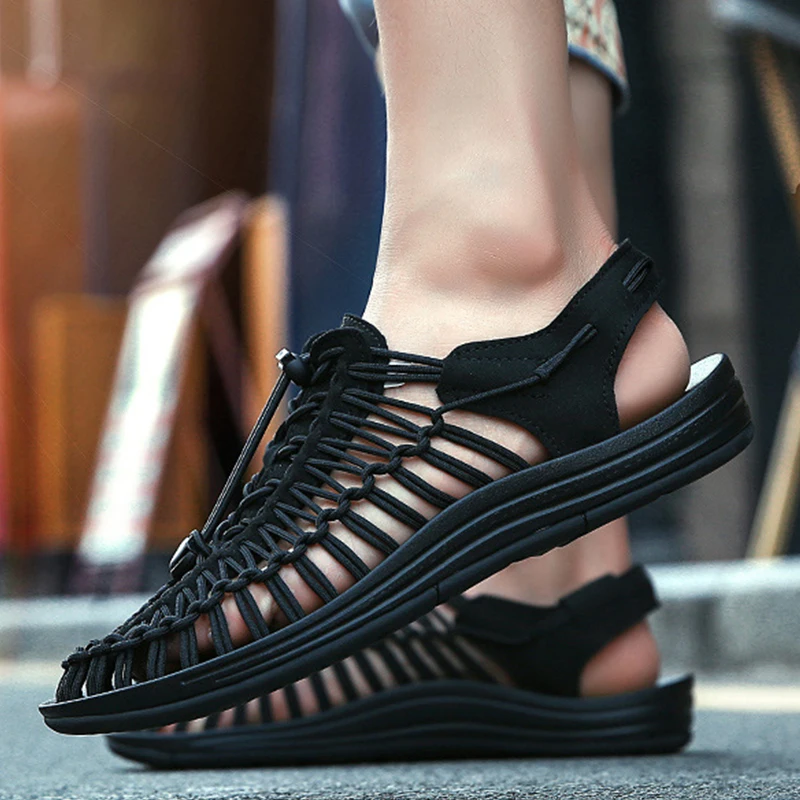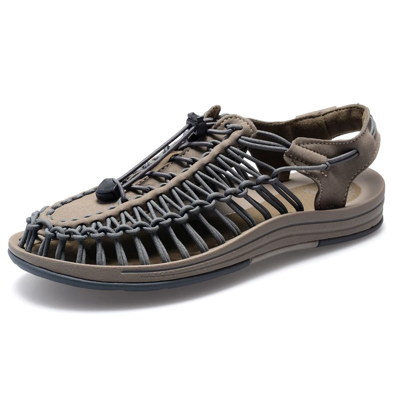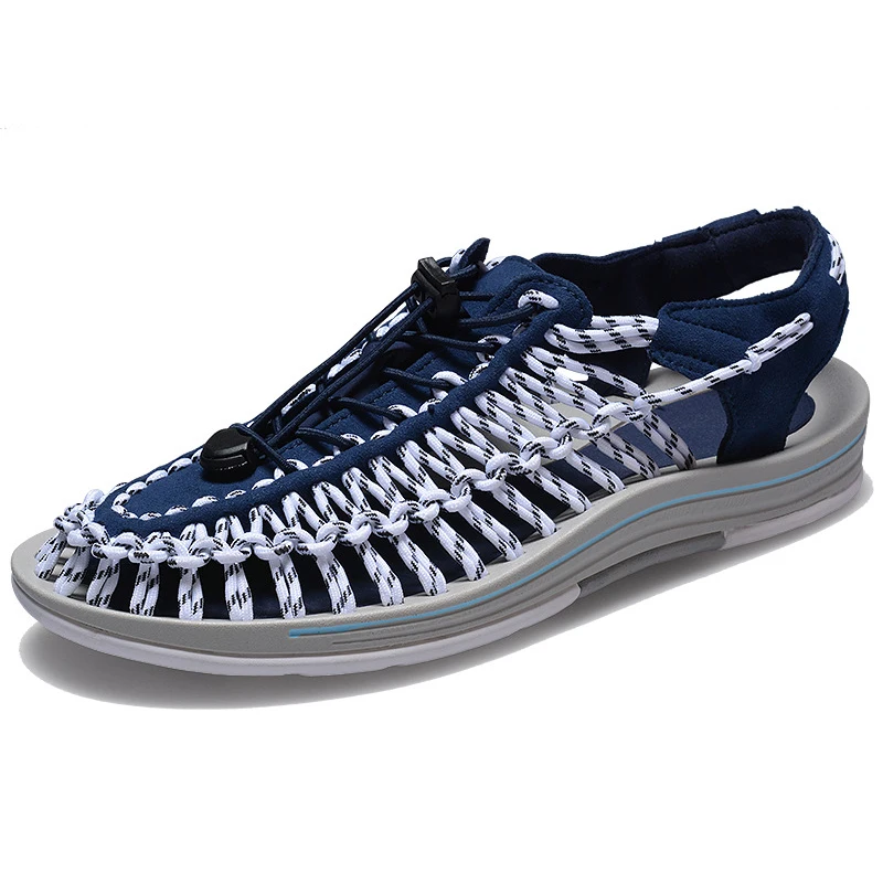 Мужские сандалии на плоской подошве, дышащие мягкие, без застежки, для пляжа, повседневная тканая обувь для отдыха, лето, 2021