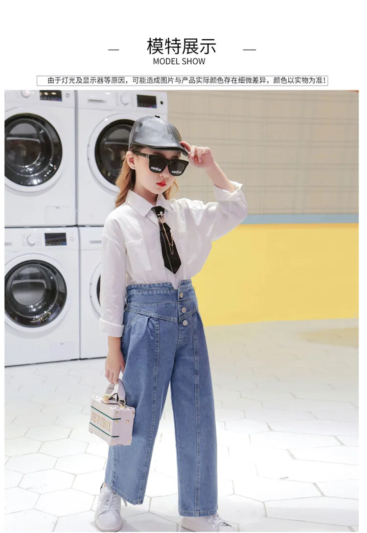 Демисезонные джинсы для девочек, детские джинсовые брюки с широкими...