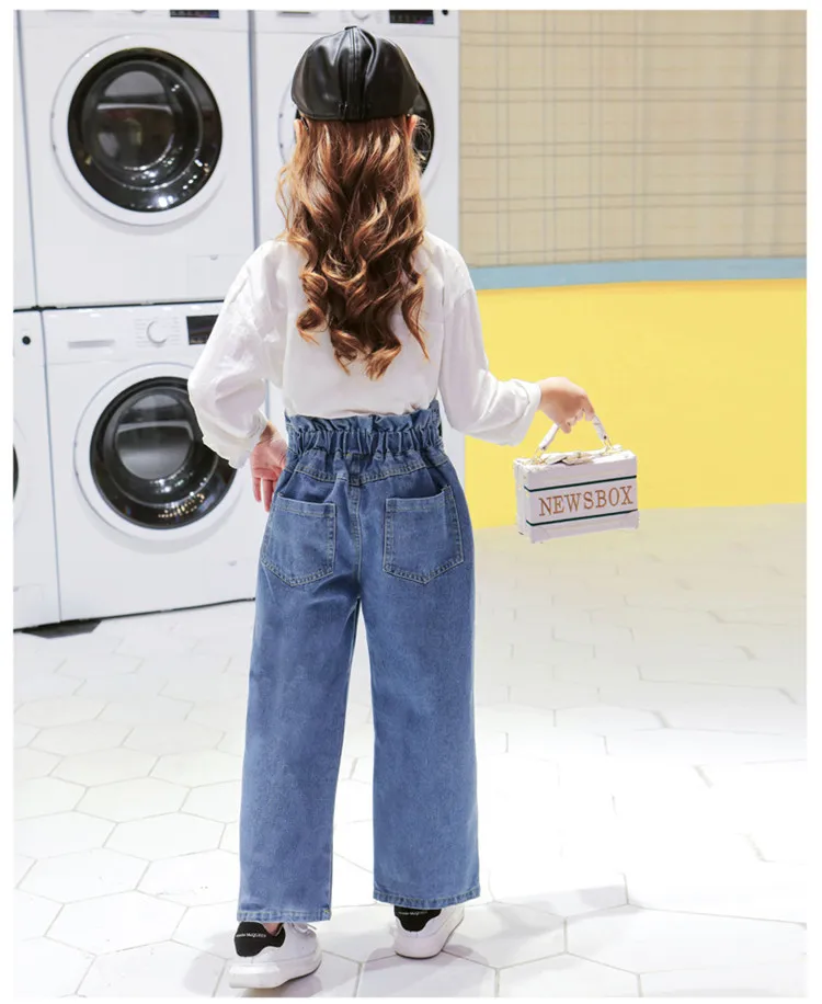 Джинсовые брюки с высокой талией для девочек-подростков от 3 до 10 лет