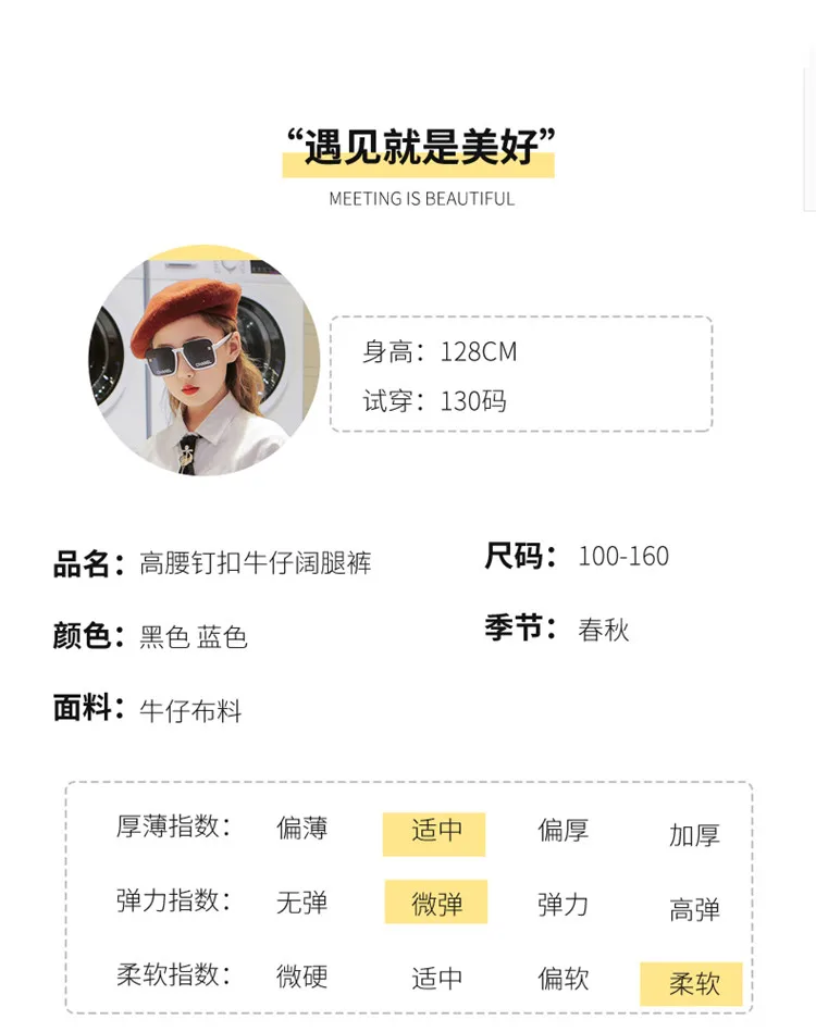 Весенне-осенние модные джинсы с высокой талией для девочек, 100-160...