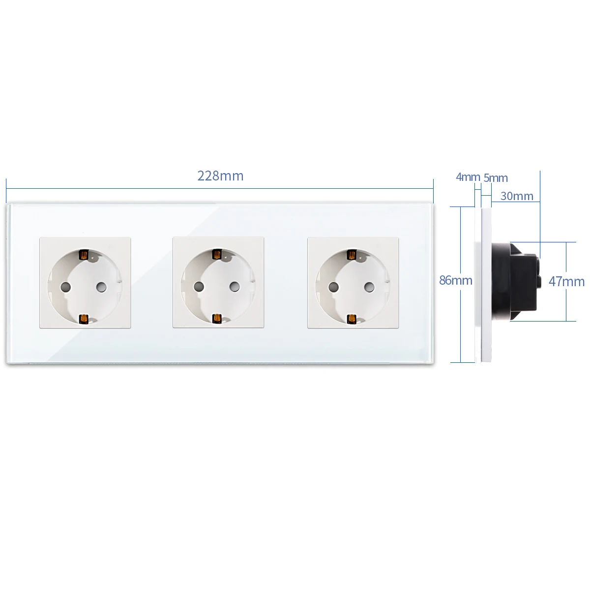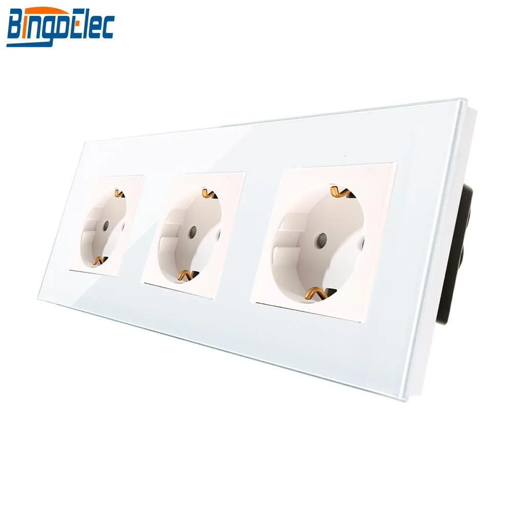 Bingoelec 16A электрическая немецкая розетка белая черная Хрустальная панель Тройная настенная розетка 228*86 мм
