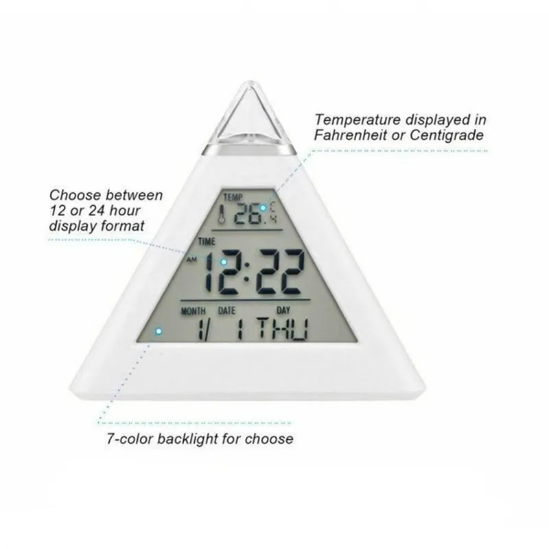 Цветные пирамидальные ЖК-часы-будильник, ночсветильник, термометр, ...