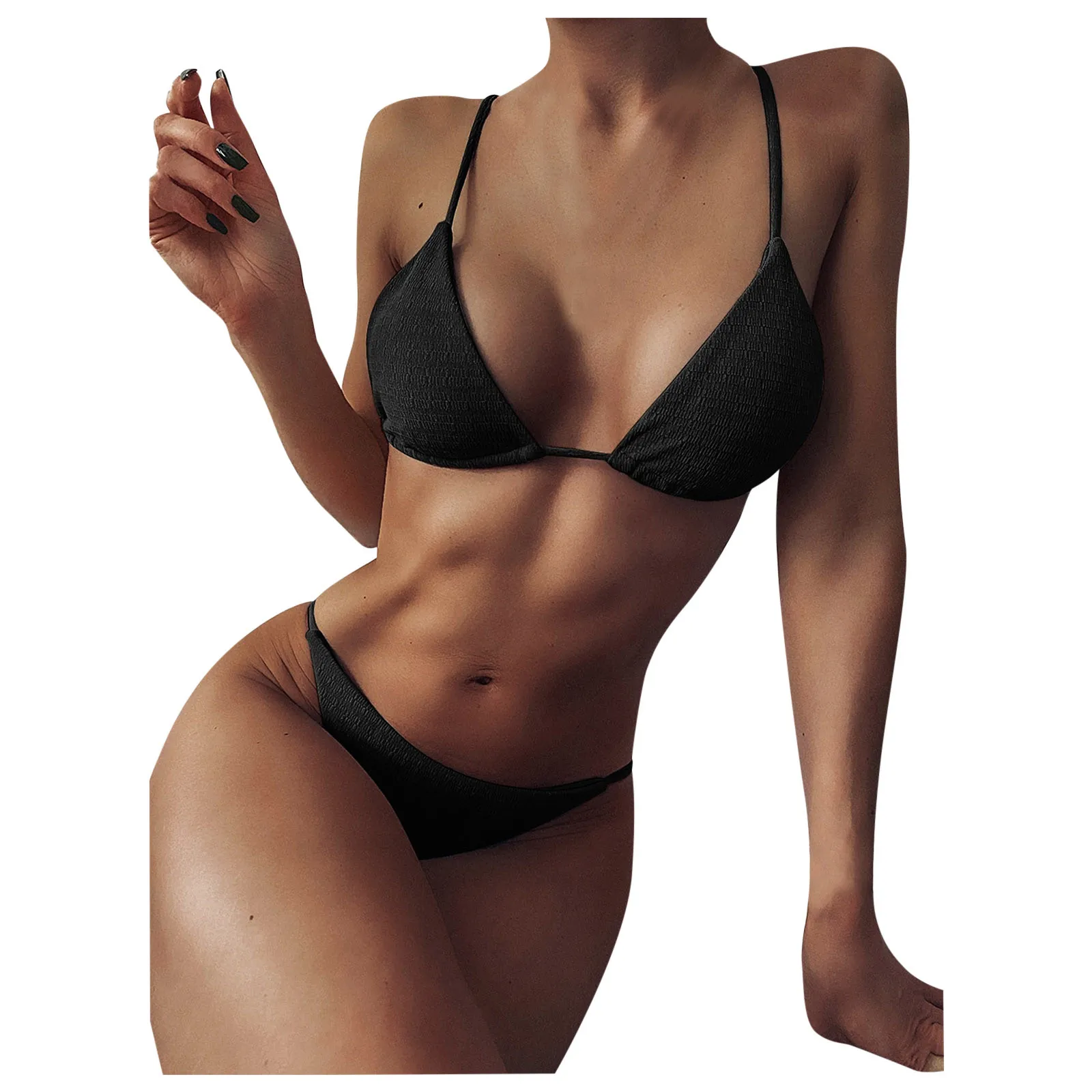 Сексуальный женский зеленый черный купальник, комплект бикини, однотонный купальник из двух частей с низкой талией, купальный костюм, бикини