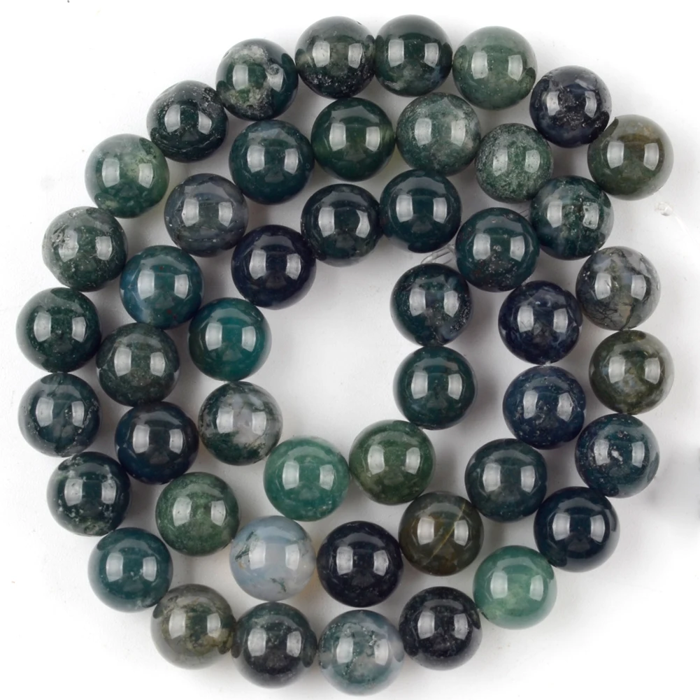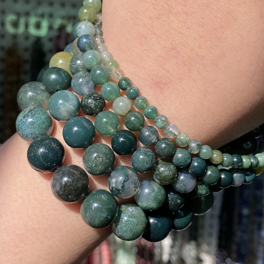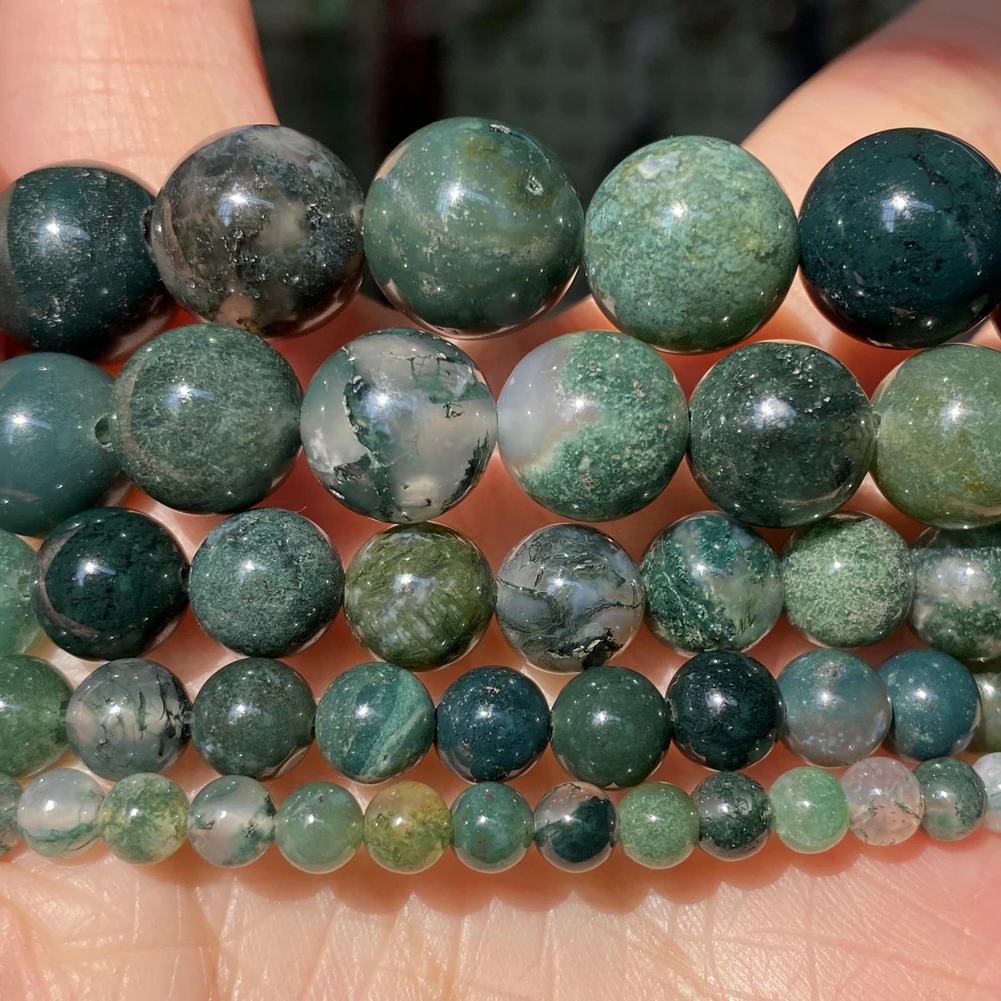 Бусы из камня Агата Natural Moss, круглые бусины-разделители россыпью для изготовления ювелирных изделий, браслетов, ожерелий сделай сам, аксессуары 4, 6, 8, 10, 12 мм, 15 дюймов