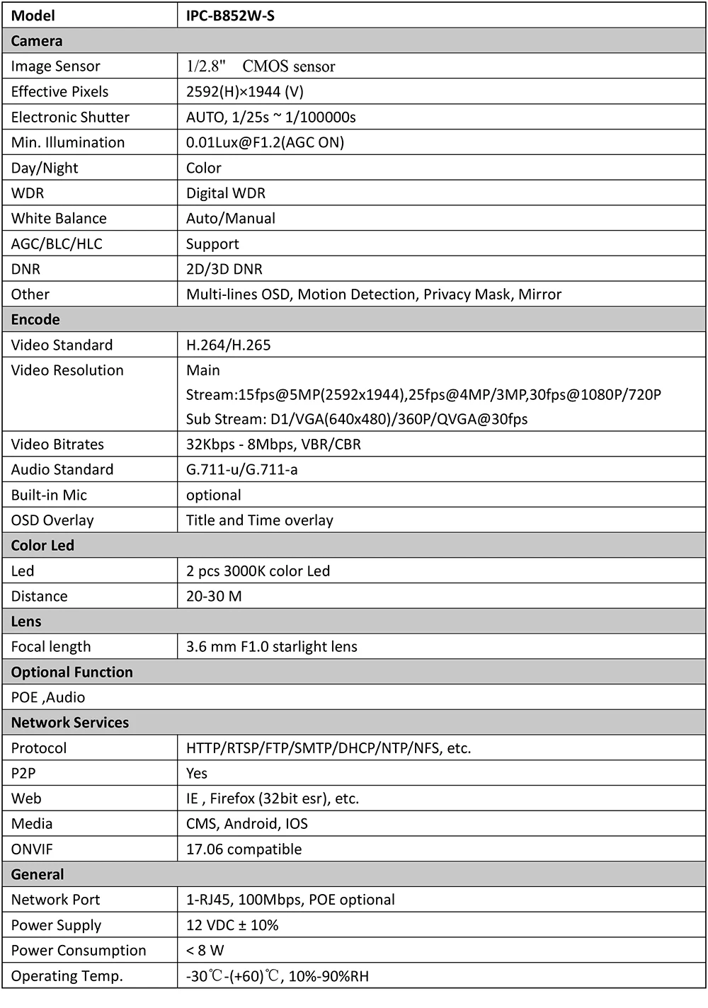 Номер моделиIPC-D852VU-S