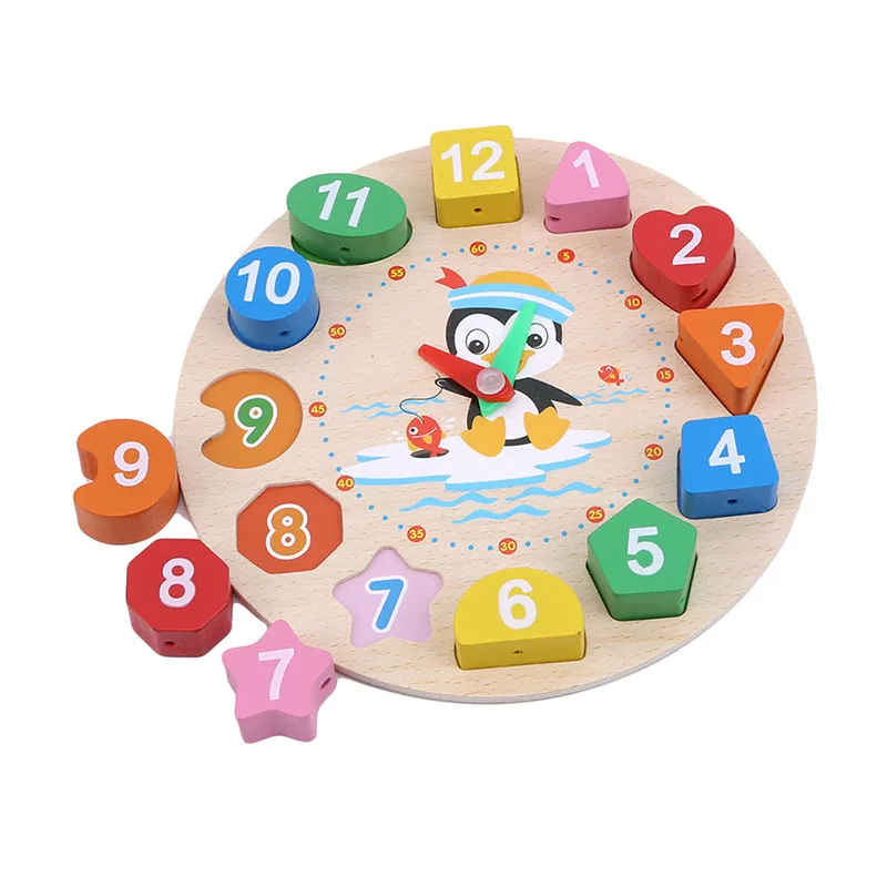 Развивающие деревянные геометрические цифровые часы Монтессори с жи...