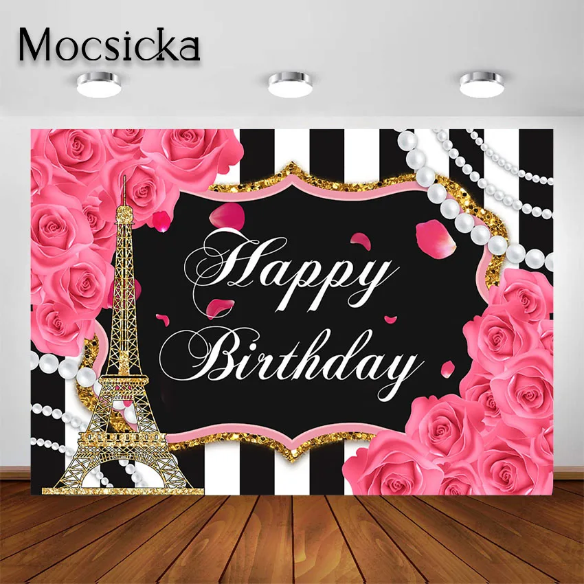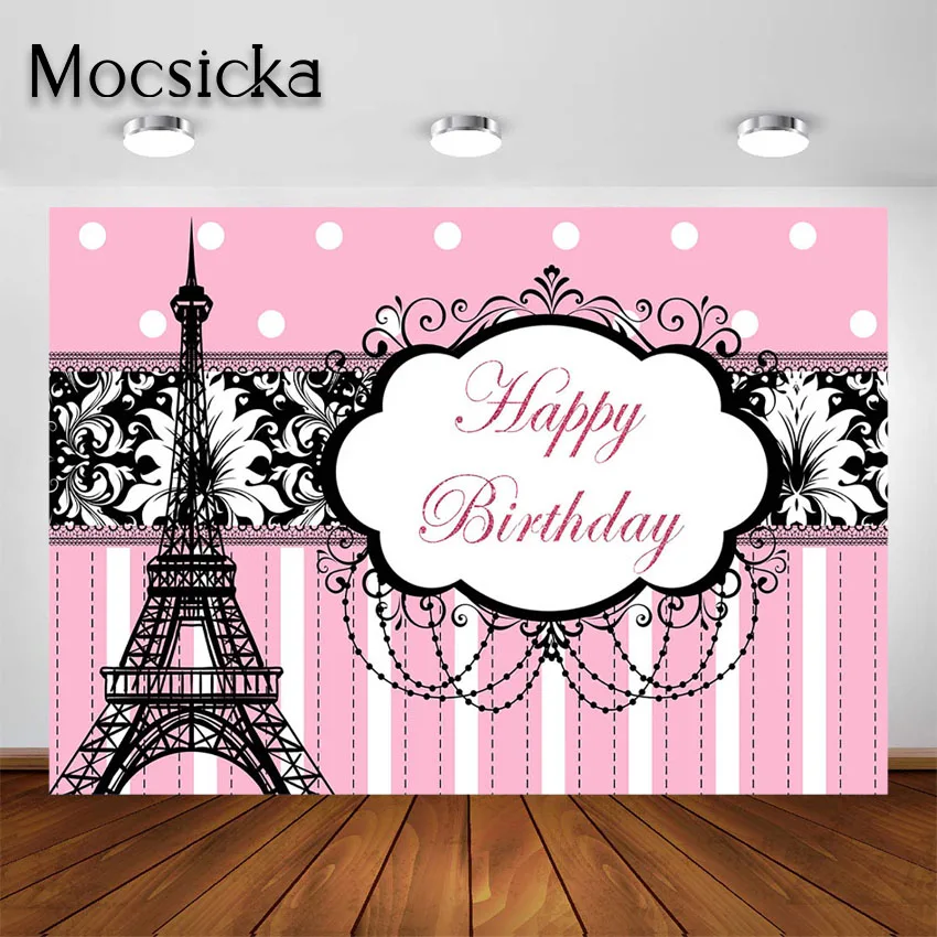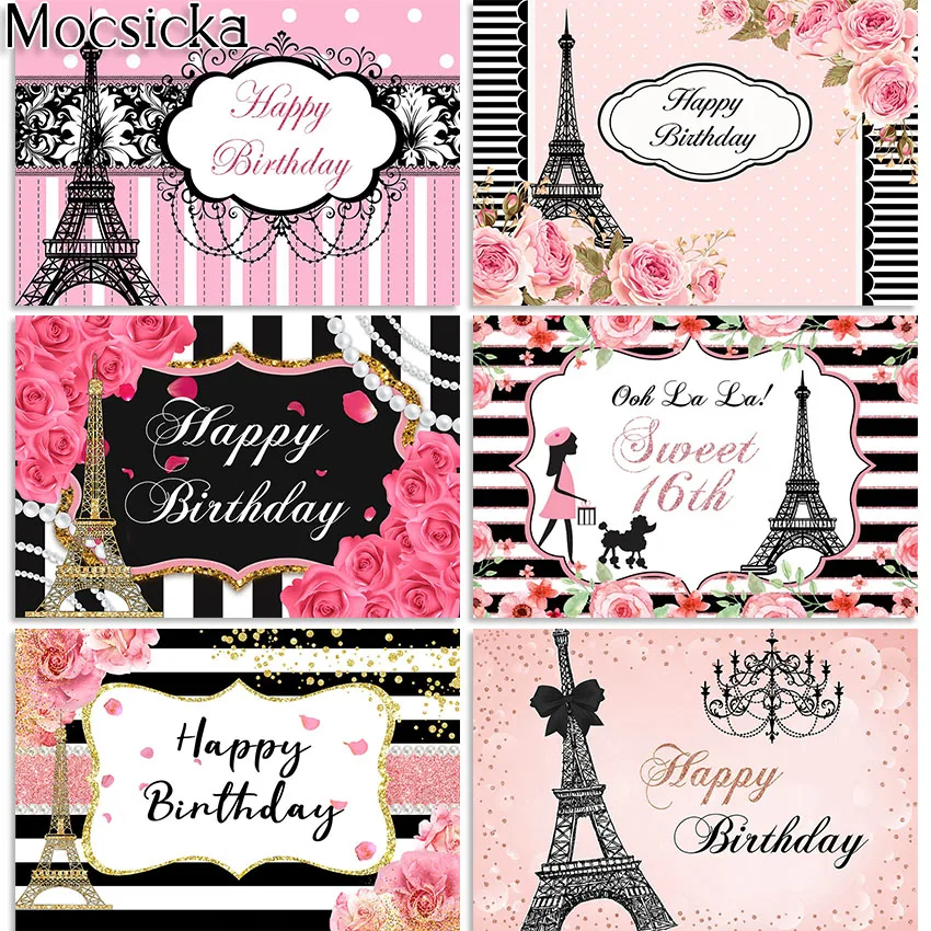Фон Mocsicka для дня рождения с изображением Эйфелевой башни для девочек, вечевечерние в Париже, дня рождения, 16 украшений