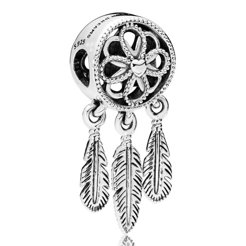 Роза Сердце и три пера Ловец снов Эйфелева башня Подвеска из бисера Серебряный Шарм подходит для браслета Pandora Diy ювелирные изделия