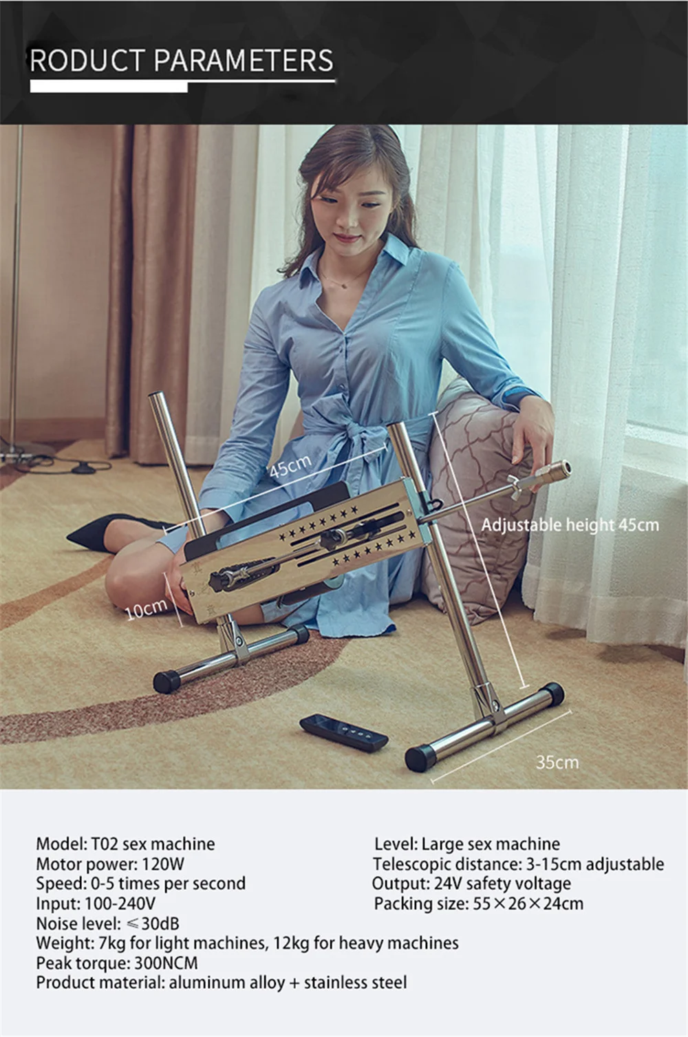 Механическая информация о секс-машине Электрический Вход: 100-240 в, а, 50-60 Гц, подходит для любой страны мира Электрический выход: 24 В постоянного тока, 5 А Тип двигателя: турборедуктор, непрерывная работа Характеристики двигателя: сверхмощный турбомотор 24 В постоянного тока 5 А Длина хода: от 3 до 15 см Бесконечная скорость: от 0 до 5 ударов в секунду (0-5 об/с) Крутящий момент: 300 нм. См Звук: от 30 до 38 дБ Корпус: нержавеющая сталь Информация о внешнем виде секс-машины Размеры посылка: д56*ш27*В28 см Регулируемый угол: от-45 градусов до + 90 градусов, вы можете быстро и надежно отрегулировать в течение секунд. Очень легко и эффективно. Он также может вращаться по горизонтали на 360 градусов. Очень стабильная машина 100% новый и высококачественный, вы получаете то, что видите. Добавьте веселья в вашу сексуальную жизнь. Сюрприз для вашего возлюбленного на Рождество. Подарит вам абсолютную сексуальную стимуляцию. Здоровый и нетоксичный секс-продукт. Легко скрывается, когда не используется под матрасом. Легко координировать различные SM постиральные Продукт легкий для сексуальной активности, увеличивает удовольствие, расслабляет. Материал: сталь, Воловья кожа, шпагат Вес: около 6 кг Посылка входит (Что в коробке) 1 X Корпус основной машины 2 X полая Т-образная штанга (опора рамы) 1 х стержень с «быстроразъемным» 1 комплект поставщиков питания 1 фаллоимитатор 14*3,2 см 1 фаллоимитатор 16*3,5 см 1 х регулятор скорости Или 1 пульт дистанционного управления * Примечание: другие дилдо и дополнения необходимо покупать отдельно *